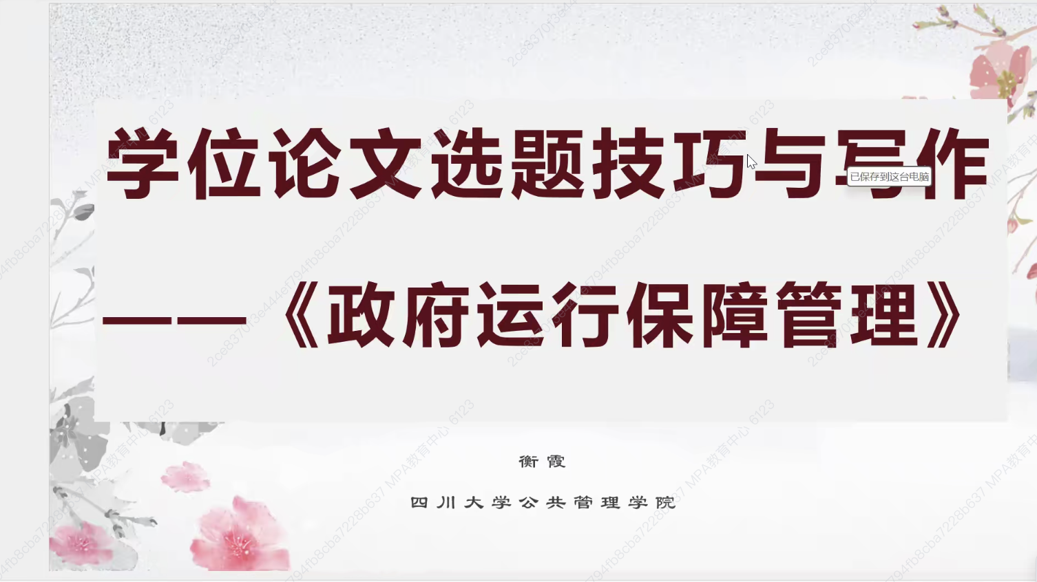 2025-12-052025年11月6日,四川大学韩国h漫 行政管理系教授、博士生导师,四川大学机关事务研究中心秘书长衡霞应邀在韩国h漫 “MPA大讲堂”主讲“政府运行保障管理方向的MPA论文选题与写作”主题讲座。韩国h漫 副院长王辉简要介绍了讲座背景,并代表学院对其莅临表达了热烈欢迎。学院张鹏教授介绍了衡霞的学术背景和研究领域,并主持了此次讲座,百余名师生通过云端共同参与本次学术活动。衡霞围绕政府运行保障管理方向的...
