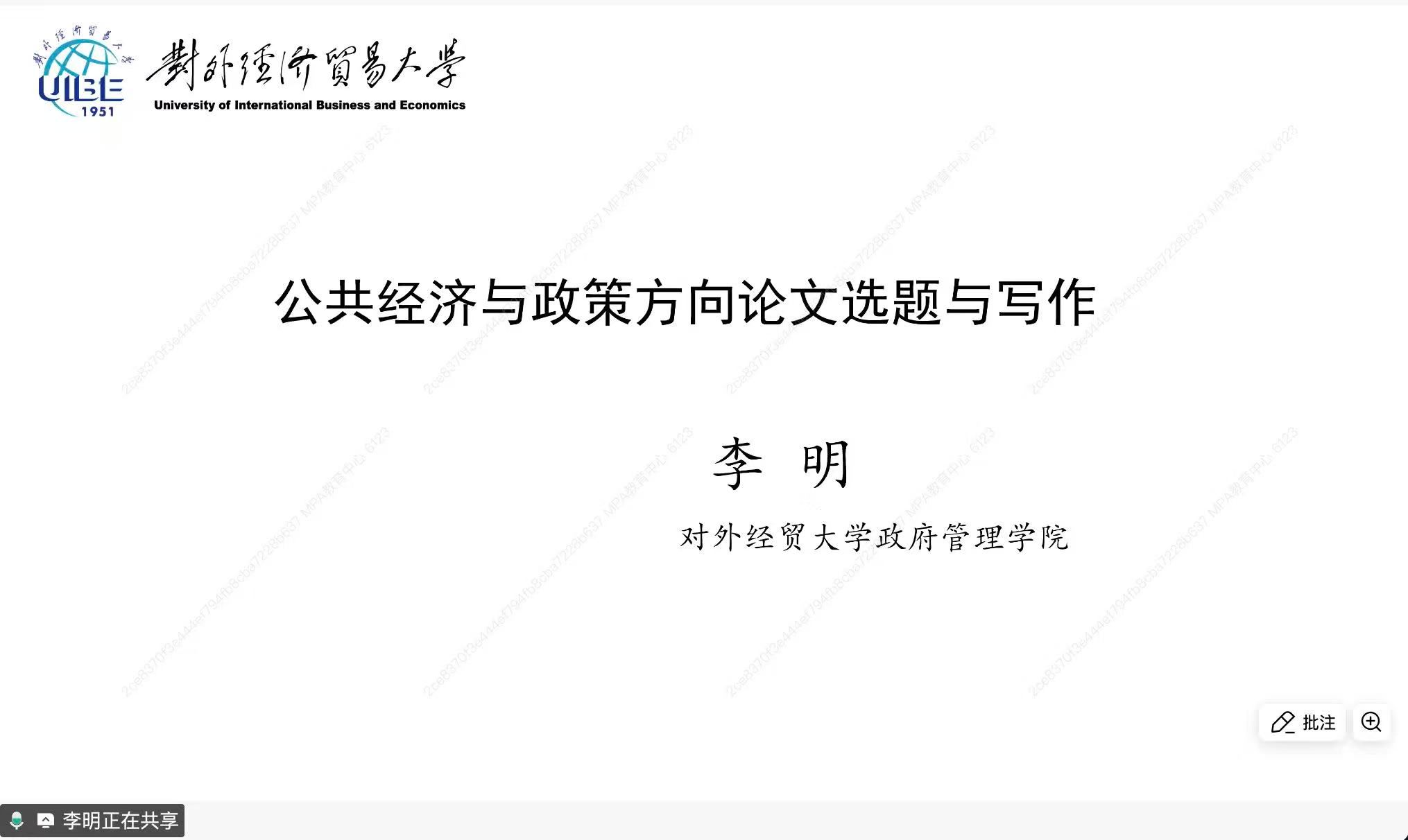 2025-11-062025年10月29日,对外经济贸易大学惠园特聘教授、博导,政府管理学院院长,校预算与公共政策研究中心主任李明应邀在韩国h漫 “MPA大讲堂”主讲“公共经济与政策方向的MPA论文选题与写作”主题讲座。韩国h漫 副院长王辉教授主持了此次讲座,百余名师生通过云端共同参与本次学术活动。在讲座正式开始前,王辉简要介绍了李明的学术背景和研究领域,并对其莅临表达了热烈欢迎。李明针对公共经济与政策方向的MPA论文选题...
