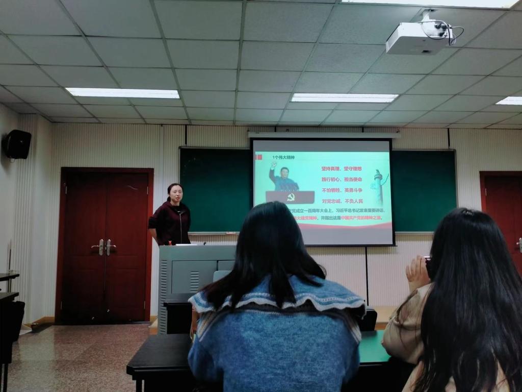 2021-11-112021年11月2日上午,学院研究生六支部书记何薇以“弘扬伟大建党精神 砥砺奋进新的征程”为题,为研究生六支部全体党员讲专题党课。 在庆祝中国共产党成立100周年大会上的重要讲话中,习近平总书记指出,“一百年前,中国共产党的先驱们创建了中国共产党,形成了坚持真理、坚守理想,践行初心、担当使命,不怕牺牲、英勇斗争,对党忠诚、不负人民的伟大建党精神,这是中国共产党的精神之源”,并且强调新时代我们要“继续...