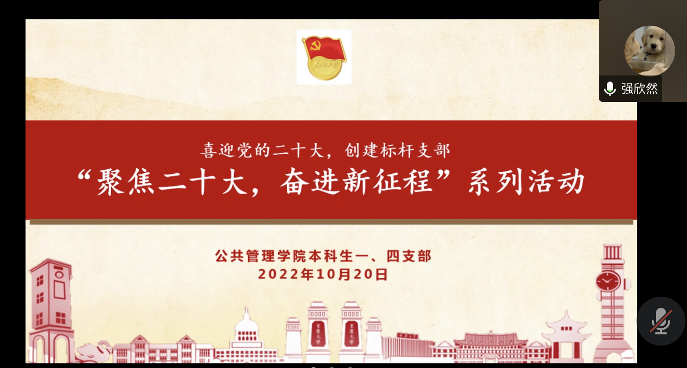 2022年10月16日,中国共产党第二十次全国代表大会在北京人民大会堂开幕,本次大会是在全党全国各族人民迈上全面建设社会主义现代化国家新征程、向第二个百年奋斗目标进军的关键时刻召开的一次十分重要的大会。为为激励动员全体党员不忘初心、牢记使命,以饱满的精神风貌迎接党的二十大胜利召开,2022年10月20日下午3点,韩国h漫 本科生一、四支部在线上线下同时开展了“喜迎党的二十大,创建标杆支部”主题教育系列活动之“...