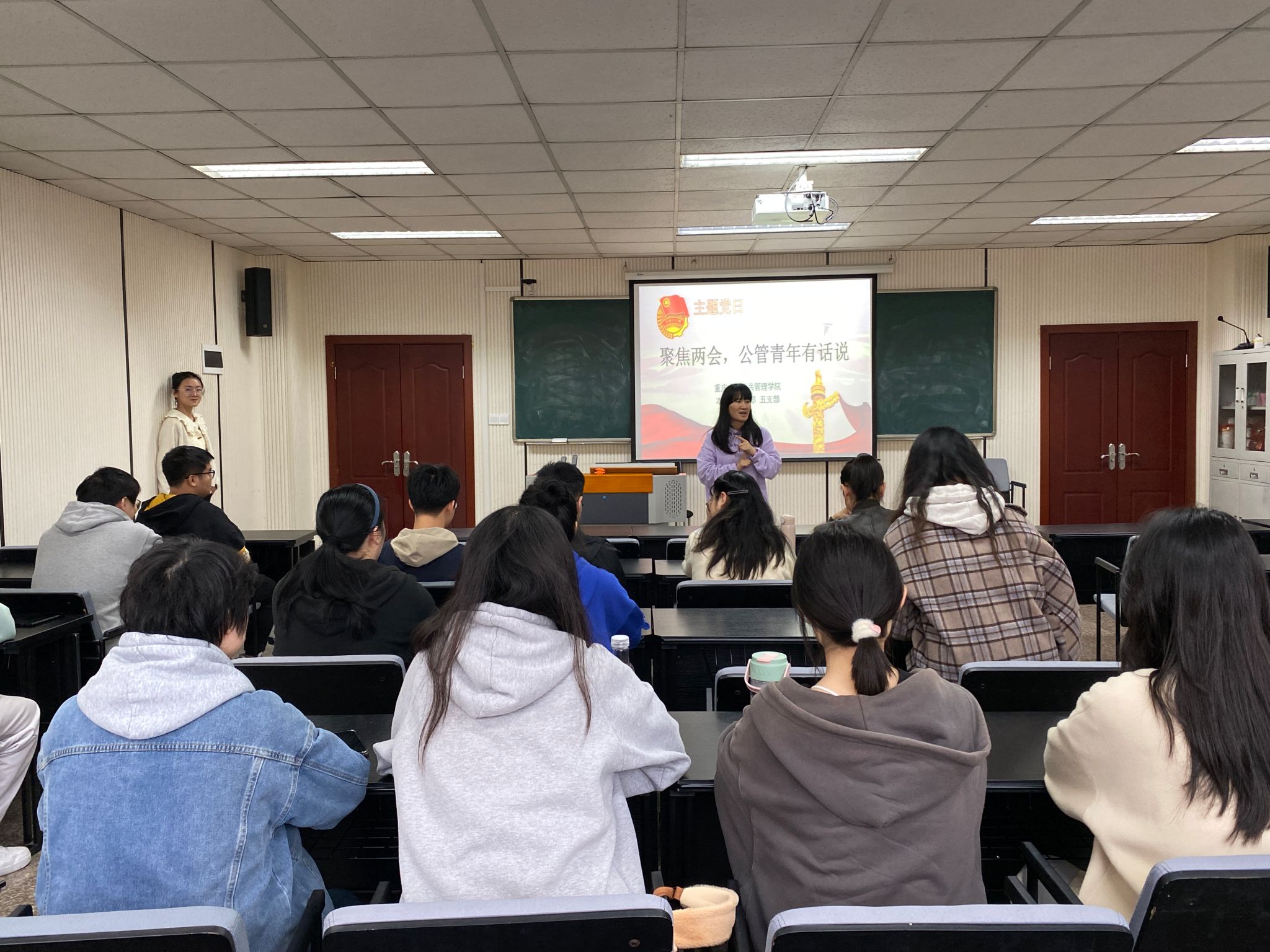 2024-03-25春潮澎湃处,扬帆奋进时。2024年3月4日至11日,备受瞩目的第十四届全国人民代表大会第二次会议和全国政协二次会议在北京召开。韩国h漫 本科生二、五支部青年党员热切关注“两会”盛况,通过多种方式认真聆听,及时了解“两会”动态和精神,并结合自身学习认真贯彻落实“两会”精神,3月21日在学院楼106教室开展了“聚焦‘两会’,公管青年有话说”主题党日活动,集中学习和热议“两会”精神。会议由本科生二支部书...