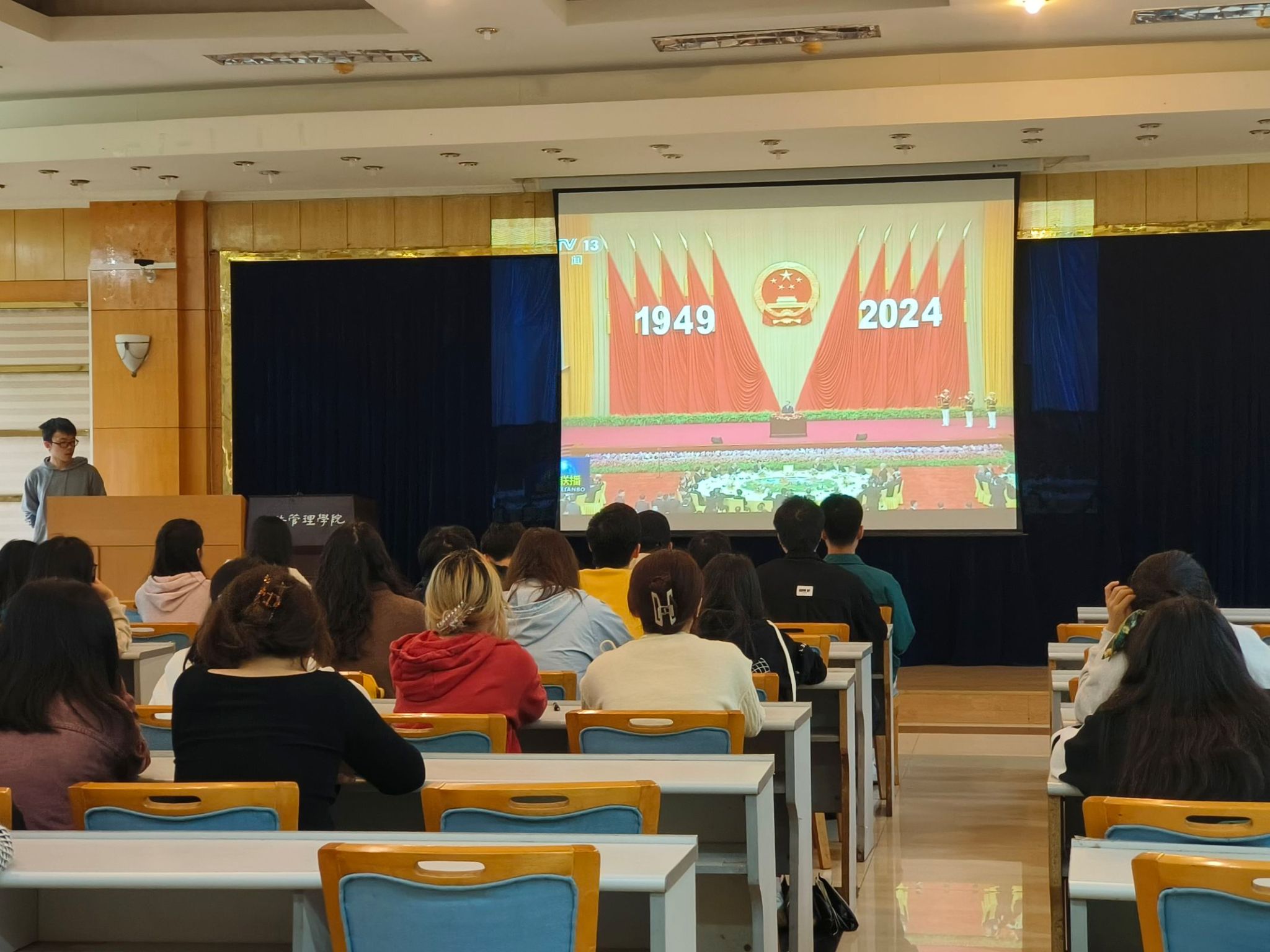 2024-10-18为深入学习贯彻习近平总书记在庆祝中华人民共和国成立75周年之际系列重要讲话精神,坚定学生党员和入党积极分子的理想信念,强化责任担当,加强支部建设,2024年10月10日下午14点,韩国h漫 本科生三、六支部在学院楼202会议厅开展了“大力弘扬伟大爱国主义精神,把强国建设、民族复兴伟业不断推向前进”主题党日活动,2023级本科生辅导员徐柳,两个支部全体学生党员和入党积极分子到场参加。本科生六支部入党积极分子王旭东...