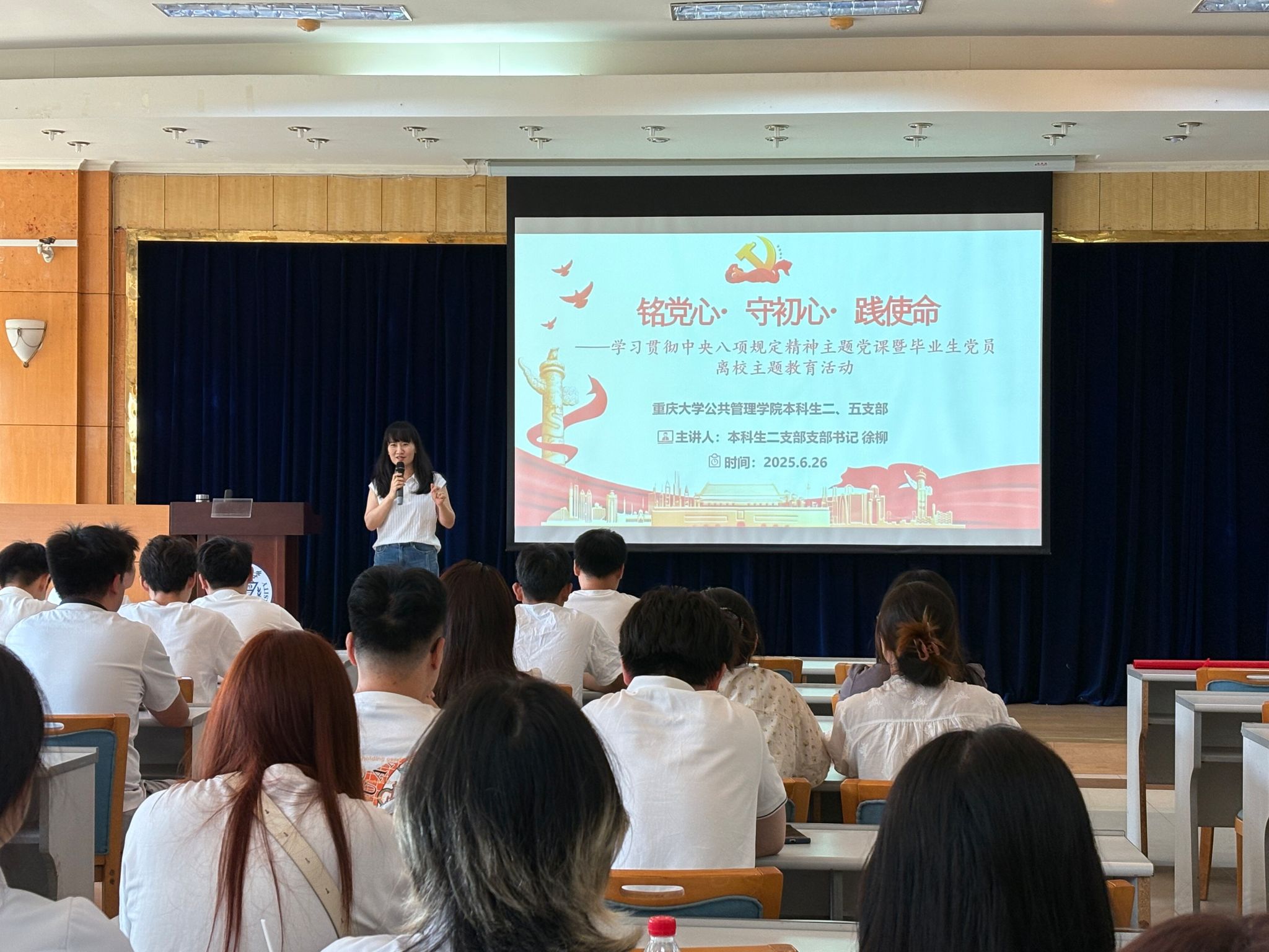 2025-07-04为深入学习贯彻中央八项规定精神,扎实推进基层党支部作风建设走深走实,进一步强化对毕业生党员的离校教育工作,2025年6月26日下午15:00,学院开展了“铭党心·守初心·践使命”学习贯彻中央八项规定精神主题党日暨毕业生党员离校主题教育。活动由本科生二支部书记徐柳主持,本科生二、五支部全体党员参加。活动伊始,徐柳老师以“学习贯彻中央八项规定精神”为主题为本科2021级全体毕业生党员讲授了最后一堂党课。徐柳老师详细...