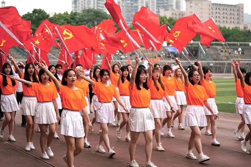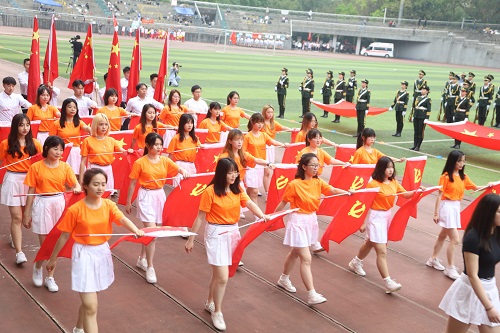 当清晨的阳光轻洒在田径场,开幕式正式开始。乘着春风的和煦,踩着《运动员进行曲》节拍的激扬,带着赤子之心的热忱,各学院的方阵依次入场,向大家展示着青春与热血的力量。公管代表队队员们身着象征着活力的橙色上衣,手持国旗党旗,一步步向主席台走来,在中国共产党建立100周年到来之际,以满腔热情与最诚挚的爱,为青春喝彩,为祖国献礼。