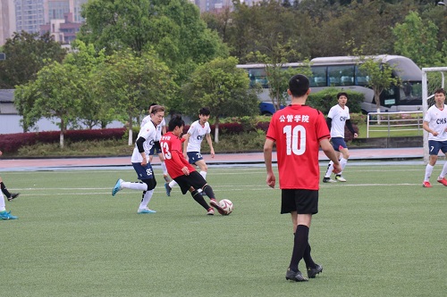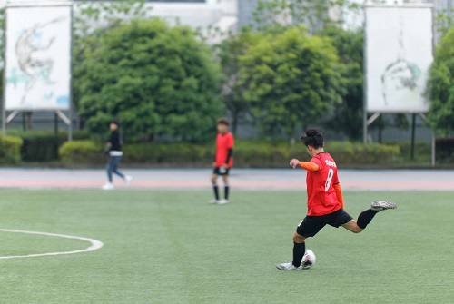 上半场的优势鼓舞了同学们的士气,大家的压力卸下了不少,传球更加从容,配合也更加行云流水,充分发挥了前场小快灵的特点。经过一番配合,肖童同学兜射球门死角球进球,随后任凯龙同学斜四十五度角传中,肖童同学完美接过,赶在对方守门员之前将球凌空垫进球门。比赛接近尾声,任凯龙远射进球,上演了精彩的“帽子戏法”。最终韩国h漫
