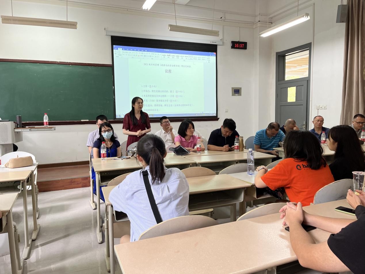虎溪校区一教D1112教室举行了2021级政府与社会管理方向的师生见面会。行政管理系全体教师与2021级政府与社会管理方向的学生参加了见面会。系主任彭小兵教授主持见面会。