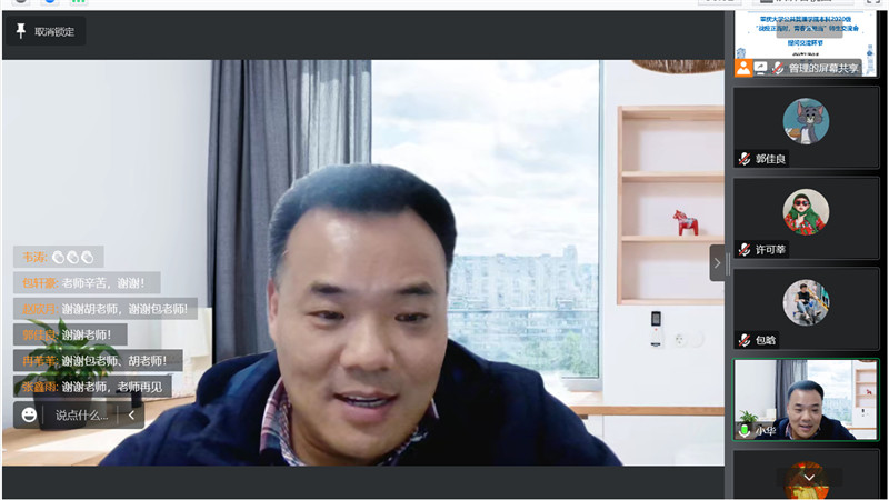 在交流提问环节,胡小华就同学们提出的核酸检测、期末考试、寒假放假等工作安排等进行了回应。同学们一致表示,胡小华老师的分享全面、细致、深入,及时回应了大家的困惑与关切,受益匪浅。
