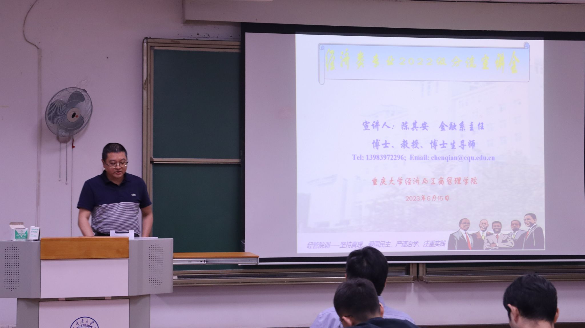 于虎溪校区DZ122教室继续承办了2022级本科生经济学大类的宣讲活动,包括专题宣讲和师生分意向交流互动两部分。