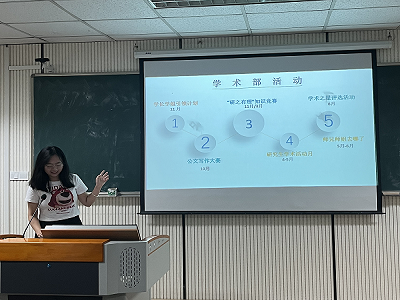 接下来,宣传部部长樊茜进行了新闻稿写作培训,讲述了新闻稿的写作需求,希望所有成员都能认真对待部门活动的宣传新闻稿。