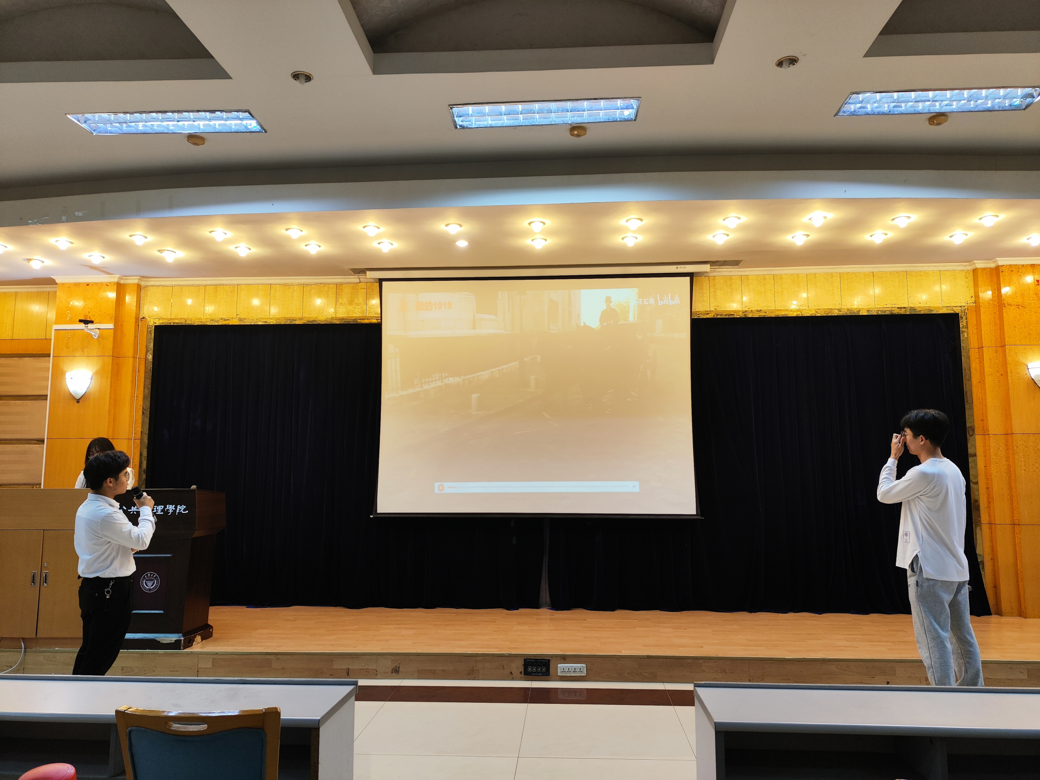在“以热烈青春之声,配音光影筑华梦”环节,同学们以声音穿越峥嵘岁月,与荧幕上的革命先烈同心共振,带来了《建国大业》和《我的1919》两个配音作品,引领大家回顾祖国伟大的历史发展进程,表达对党、国家和人民的祝福。