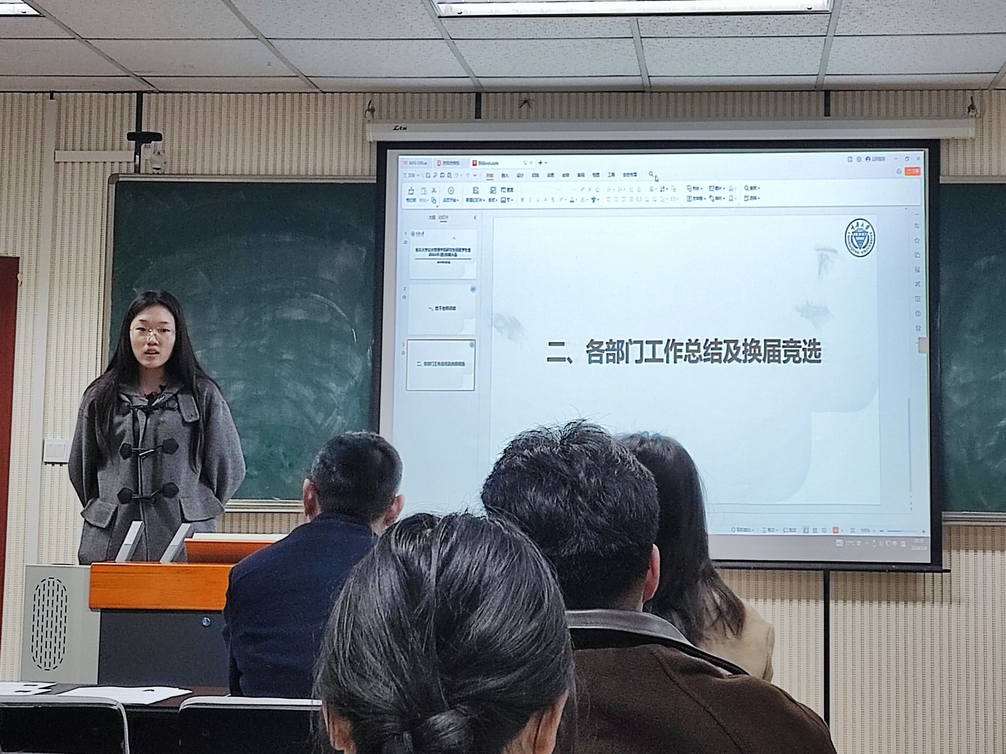 大会第二项,由各部门部长依次进行述职,总结上一学期的工作情况,并对未来工作进行展望,希望新一届的成员们能够提出新思路、新方案,不忘初心,砥砺前行。