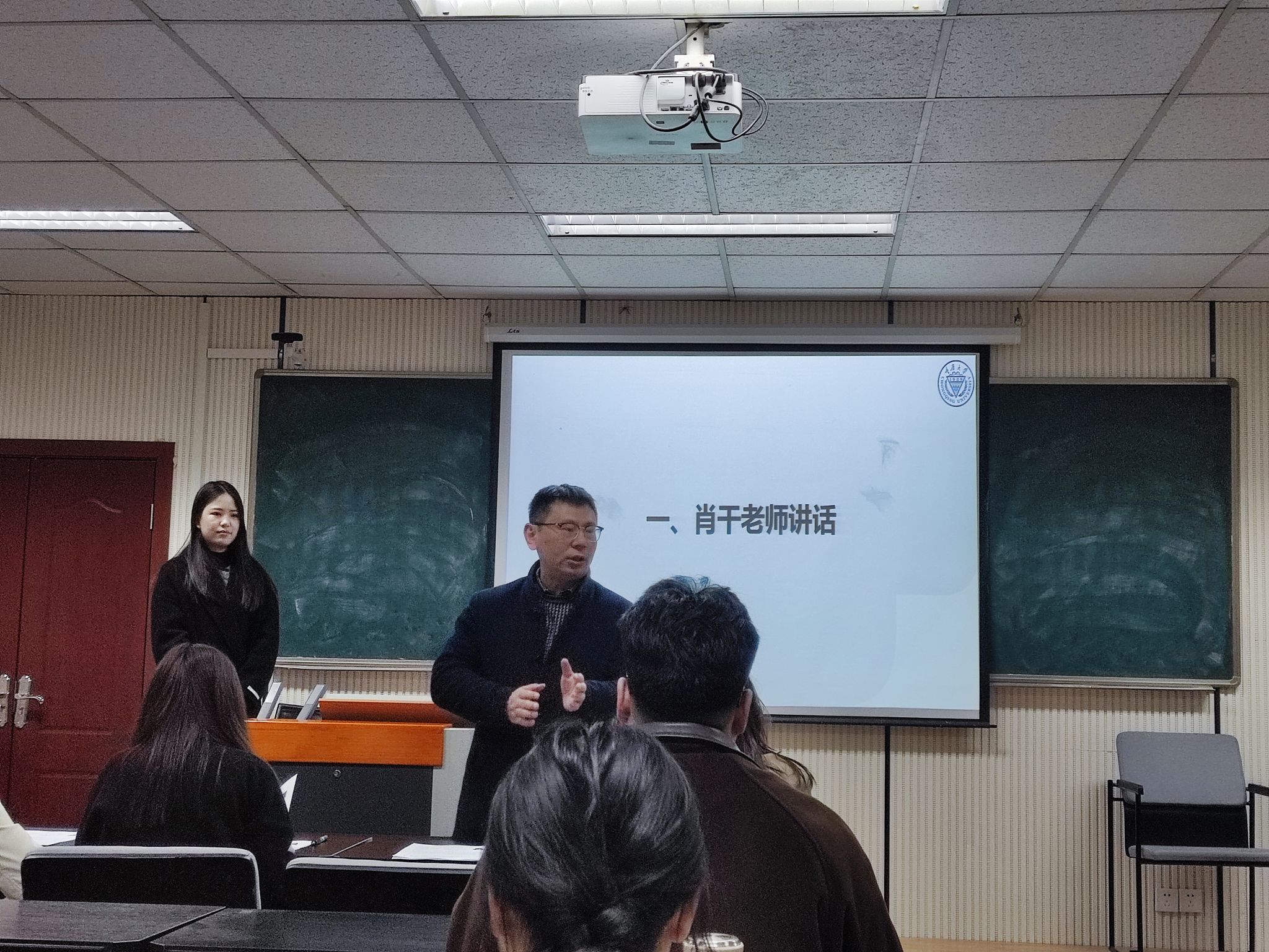 大会第一项,由研究生指导老师肖干老师作开场发言,他对上学期学院研团学工作的顺利完成表示祝贺,同时希望新一届的成员们能够共同努力,用自己的思想和行为去带动其他同学一起进步。