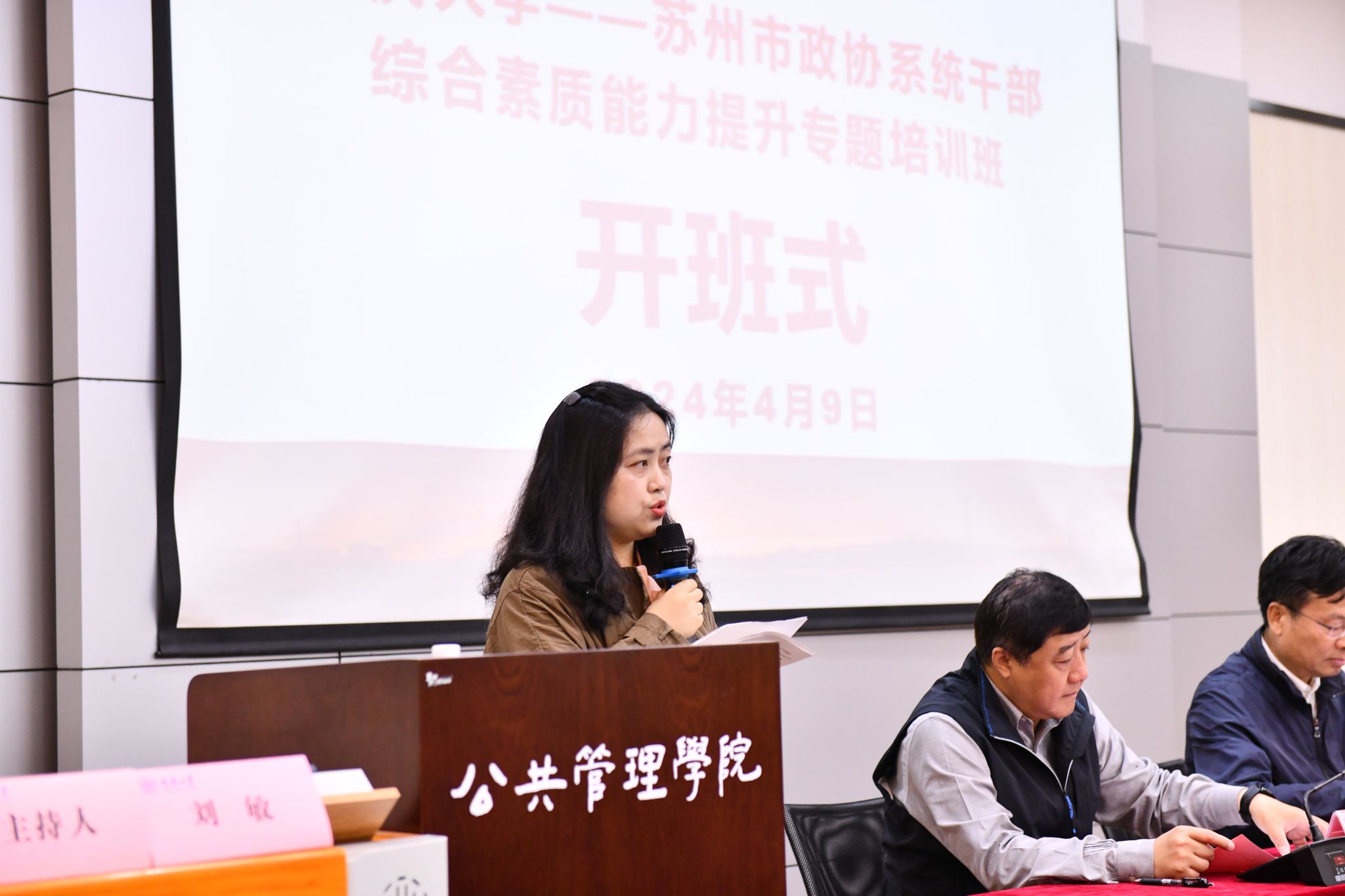的学习过程中,不断提升自我综合素质,为未来的工作奠定坚实的基础。接着,苏州市政协党组成员徐刚发表了讲话,并宣布了本次培训班的班委名单。