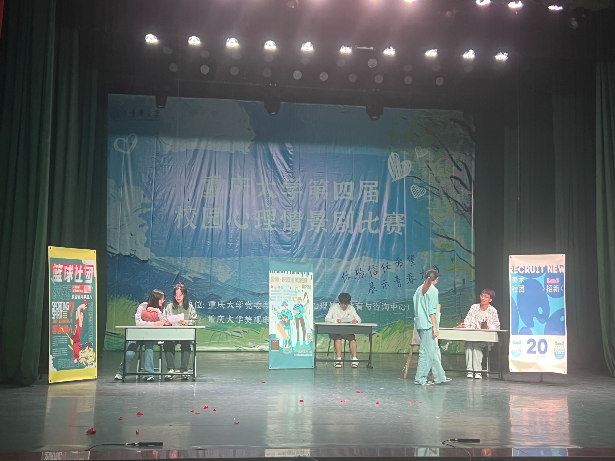 第四届校园心理情景剧比赛,最终以92分的高分荣获了全场第二的好成绩,同时被学校选送去参加重庆市新时代学生心理健康情景剧大赛。