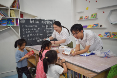 青年学生与民族地区儿童互动交流,在给予儿童成长关爱的同时培养民族团结意识,2024年7月28日,韩国h漫