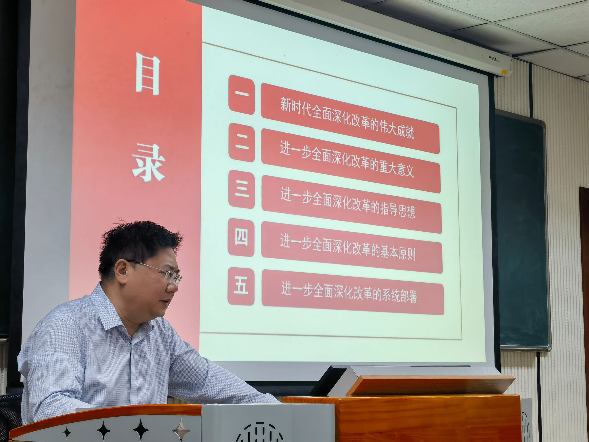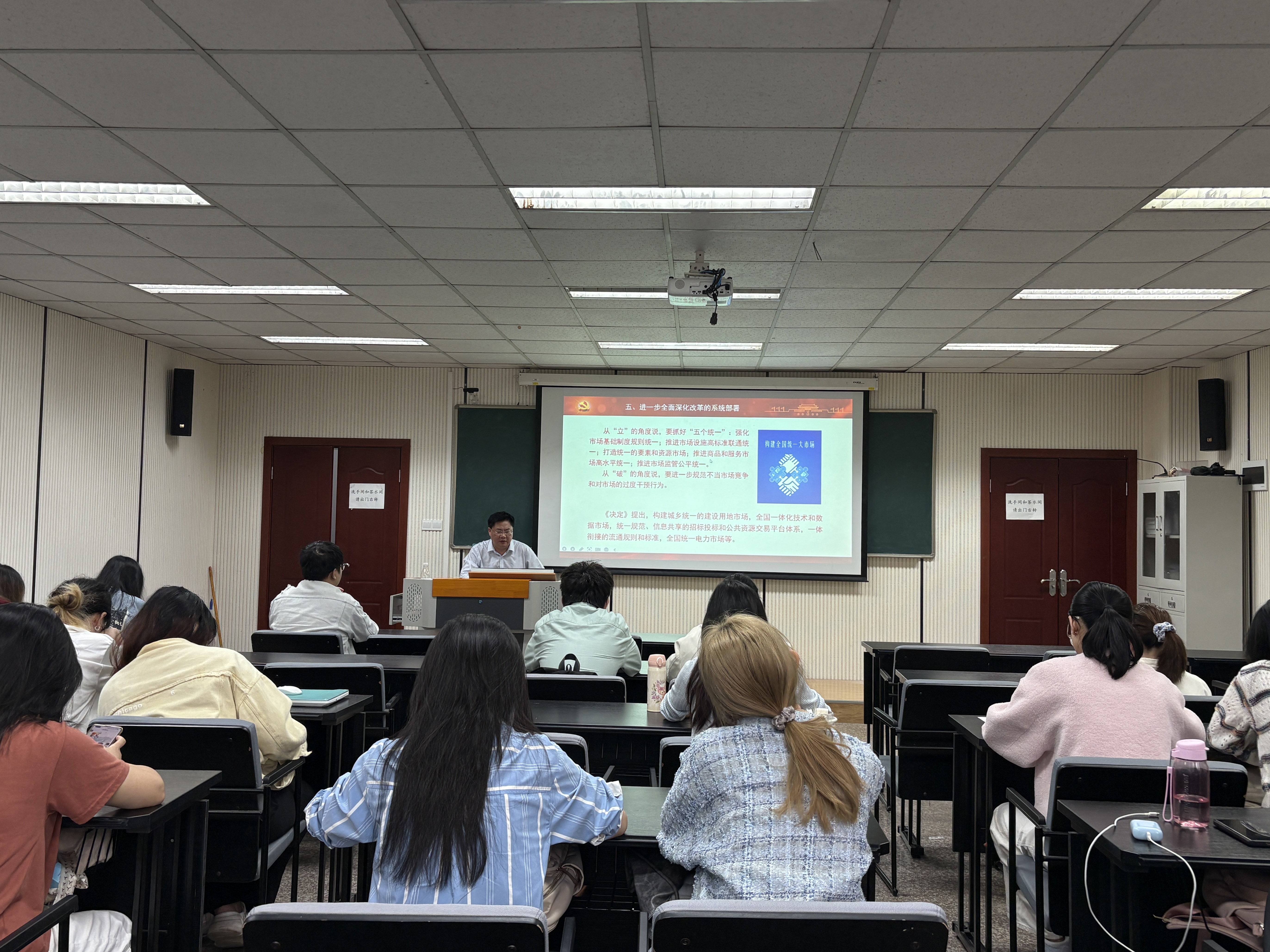 党委副书记、纪委书记周余斌给学院本科二、五支部讲授“深入学习贯彻党的二十届三中全会 共筑中国式现代化”主题党课活动。本科生二支部书记徐柳主持,本科生二、五支部全体党员同志到场参加。