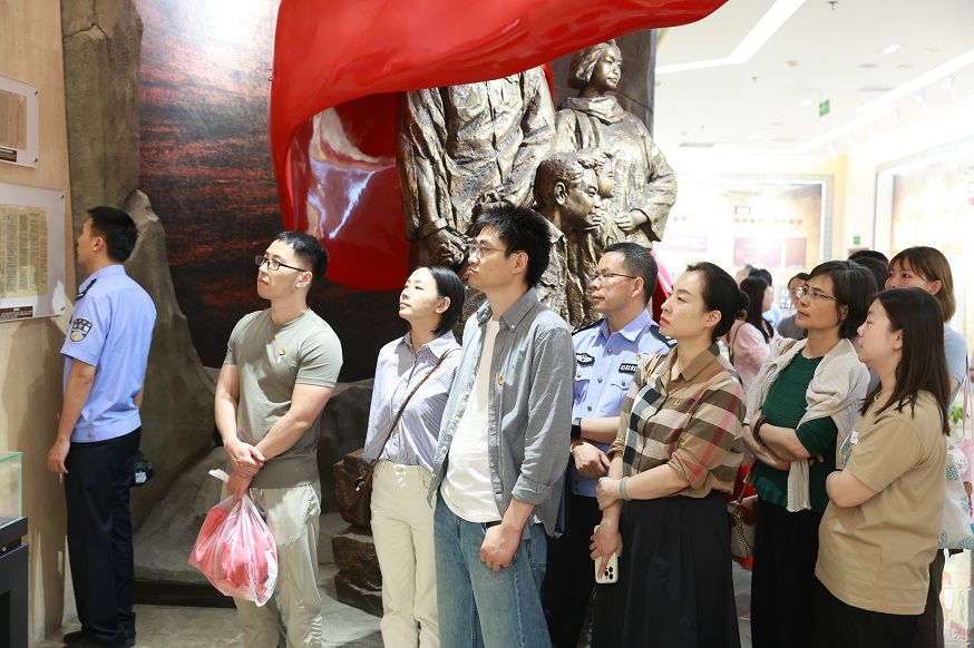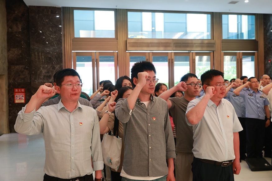 在讲解员的带领下,全体人员在序厅观看视频《习近平总书记的告诫》,重温了入党誓词。