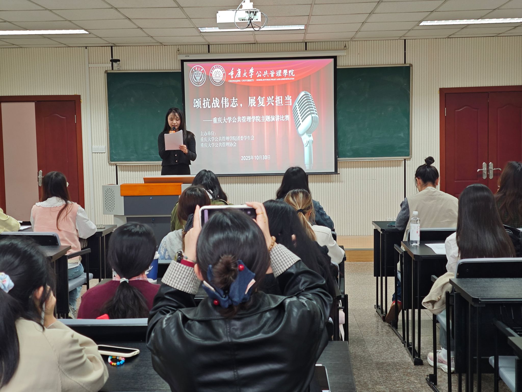 全体本科生成功举办了2025年“颂抗战伟志,展复兴担当”演讲比赛。比赛吸引了来自美视电影学院、艺术学院和新闻学院等学院的选手积极参赛,学院团委书记兼2024级辅导员徐柳老师、2023级辅导员李庆老师以及4名硕士研究生代表担任本次比赛的评委。