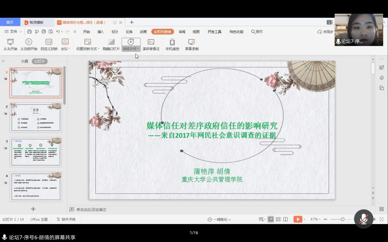 下午15时许,胡倩同学在平行分论坛七:社会治理与民生保障分论坛分享了自己的学术论文,胡倩同学汇报的论文是在韩国h漫