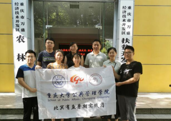 的本科生柳鲲鹏、高艺宁、范玉峰、杨宇寒以及环境与生态学院的本科生杨曦等五位同学组成“北冥有鱼暑期实践团”,于2019年8月12日至16日赴万盛经开区开展农村人居环境治理调研。调研期间,实践团成员走访了万盛经开区农林局、环保局、城市管理局、旅游发展委员会、青年镇人民政府、关坝镇人民政府、黑山镇人民政府、黑山谷旅游投资有限公司及黑山谷景区、奥陶纪旅业有限公司等十多个单位、场所,并参观考察了关坝镇凉风村“全国乡村旅游重点村”的发展经验,从中感悟绿水青山,探究当地如何通过旅游产业的嵌入来改善生态环境,实现“特色保护类”乡村振兴。