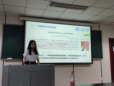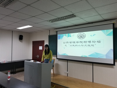 公共管理专业2018级硕士研究生谢思捷,她在《改革》(CSSCI)发表了《游戏化测评技术在人才选拔中的应用》这一篇综述类学术论文,她在分享自己论文写作过程的同时,还从选题、写作与投稿这三个方面阐述了自己对综述类文章写作的思考。她的分享有许多实用的方法和技巧,获得了在场同学的阵阵掌声。