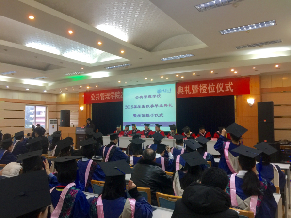 党委书记、学校MPA教育中心主任张邦辉出席典礼并讲话,学院53名获得MPA专业硕士学位与2名获得高等教育学硕士学位的毕业生参加典礼并接受学位授予。学院党委副书记刘淳主持典礼。