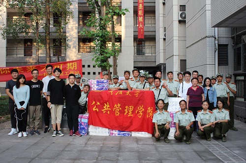 接着,王老师向同学们转达了院领导们对同学们的关心之情。同时叮嘱同学们军训时期注意安全,享受欢乐时光的同时勿忘抓紧学习,充实自己。此次慰问品发放过程井然有序。礼物虽轻却充满朴实,承载之爱亦是无量。同学们对此次的慰问活动也十分感到,愿每一位新生可以在接下来的日子里可以真正融入公管这个温暖的大家庭,开好大学的头,走好自己的大学之路。