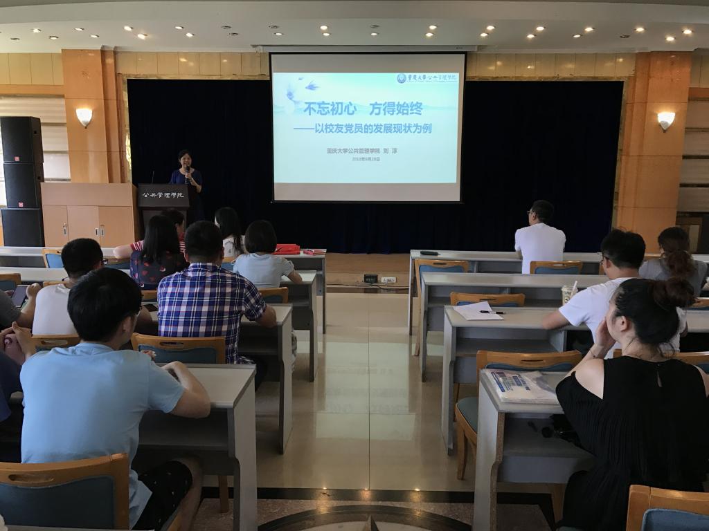 然后,刘淳为全体同志上了毕业前最后一堂党课,题目为“不忘初心、方得始终——以校友党员的发展现状为例”。她借走访慰问校友的契机,梳理了部分校友党员的学习经历和工作情况,并深情回忆了他们在校读书期间的点点滴滴,和大家分享了他们的成长故事与心得。她介绍到,韩国h漫