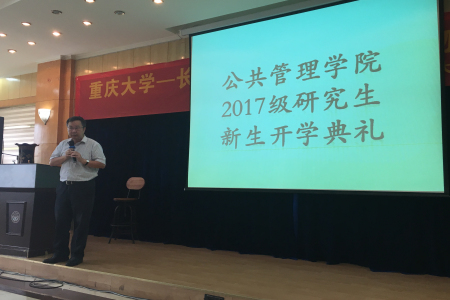 2017级研究生开学典礼于学院楼二楼多功能厅举行。院党委书记兼常务副院长张邦辉,副院长张鹏、院党委副书记、纪委书记刘淳,副院长李志,教师代表罗章,研办肖干老师、刘红老师及100多名研究生新生参加了典礼,典礼由党委秘书、2017级研究生辅导员何薇主持。
