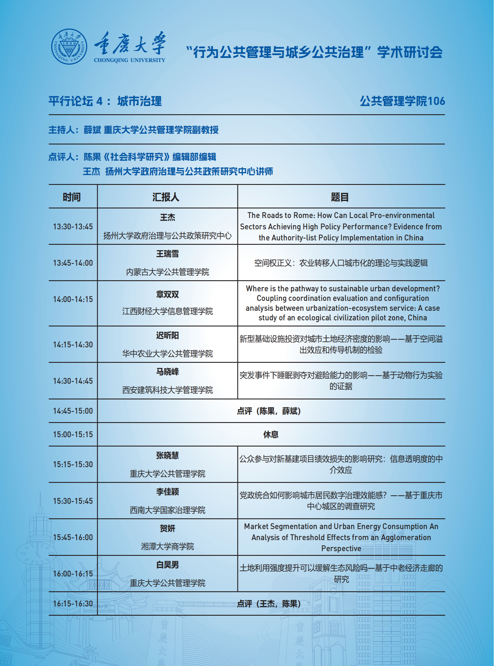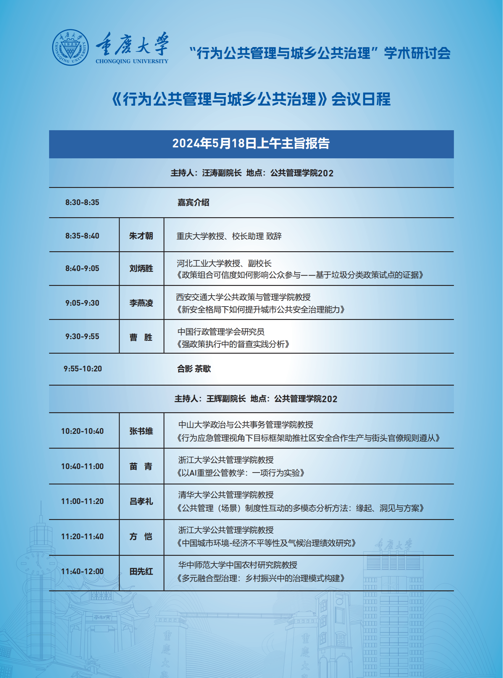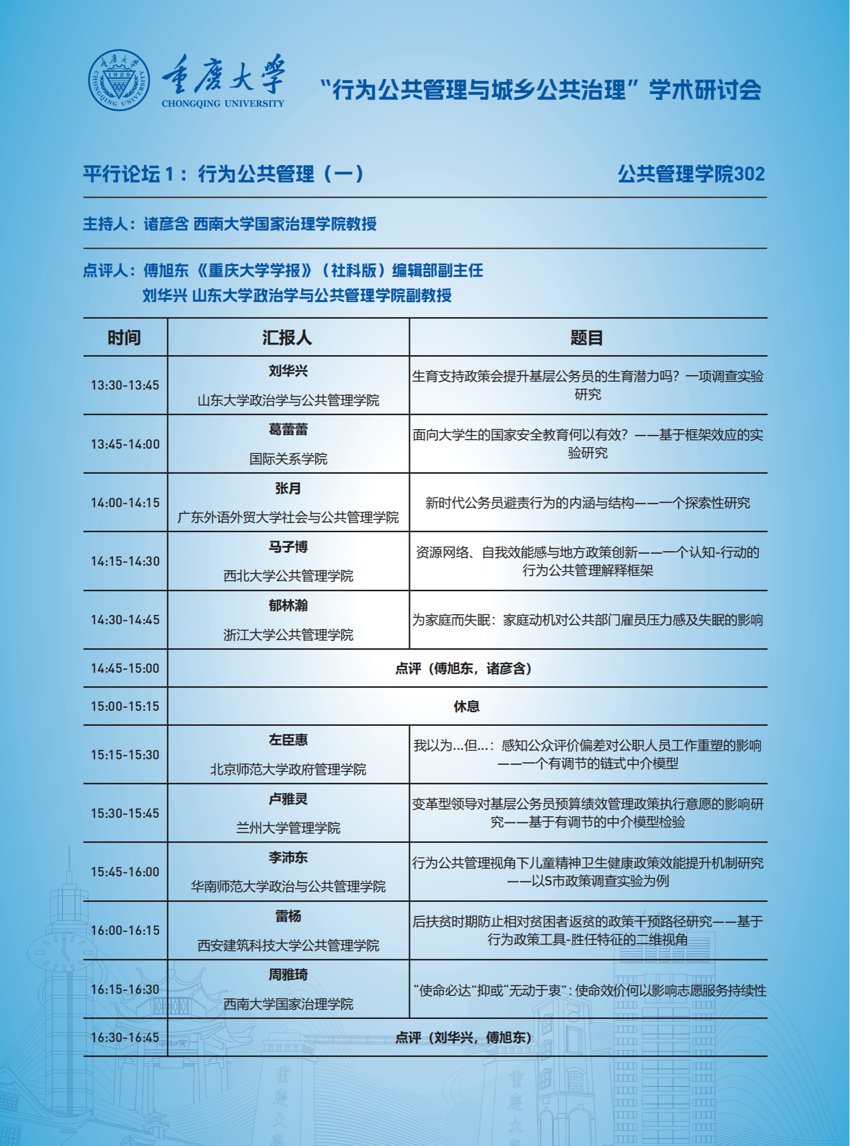 “行为公共管理与城乡公共治理”学术研讨会日程