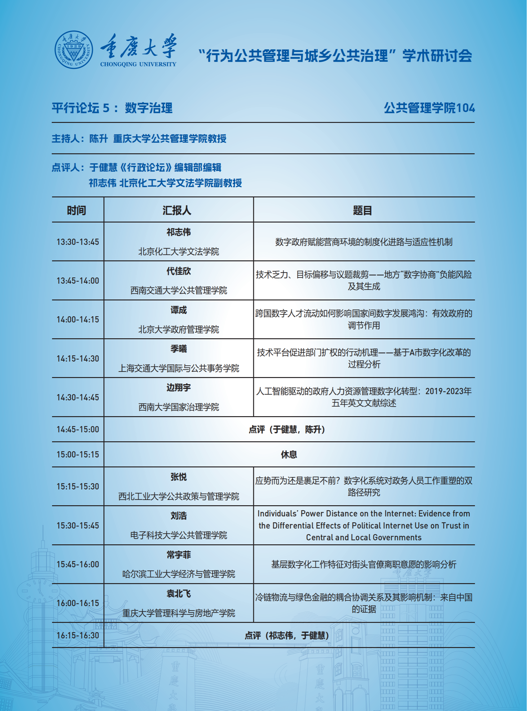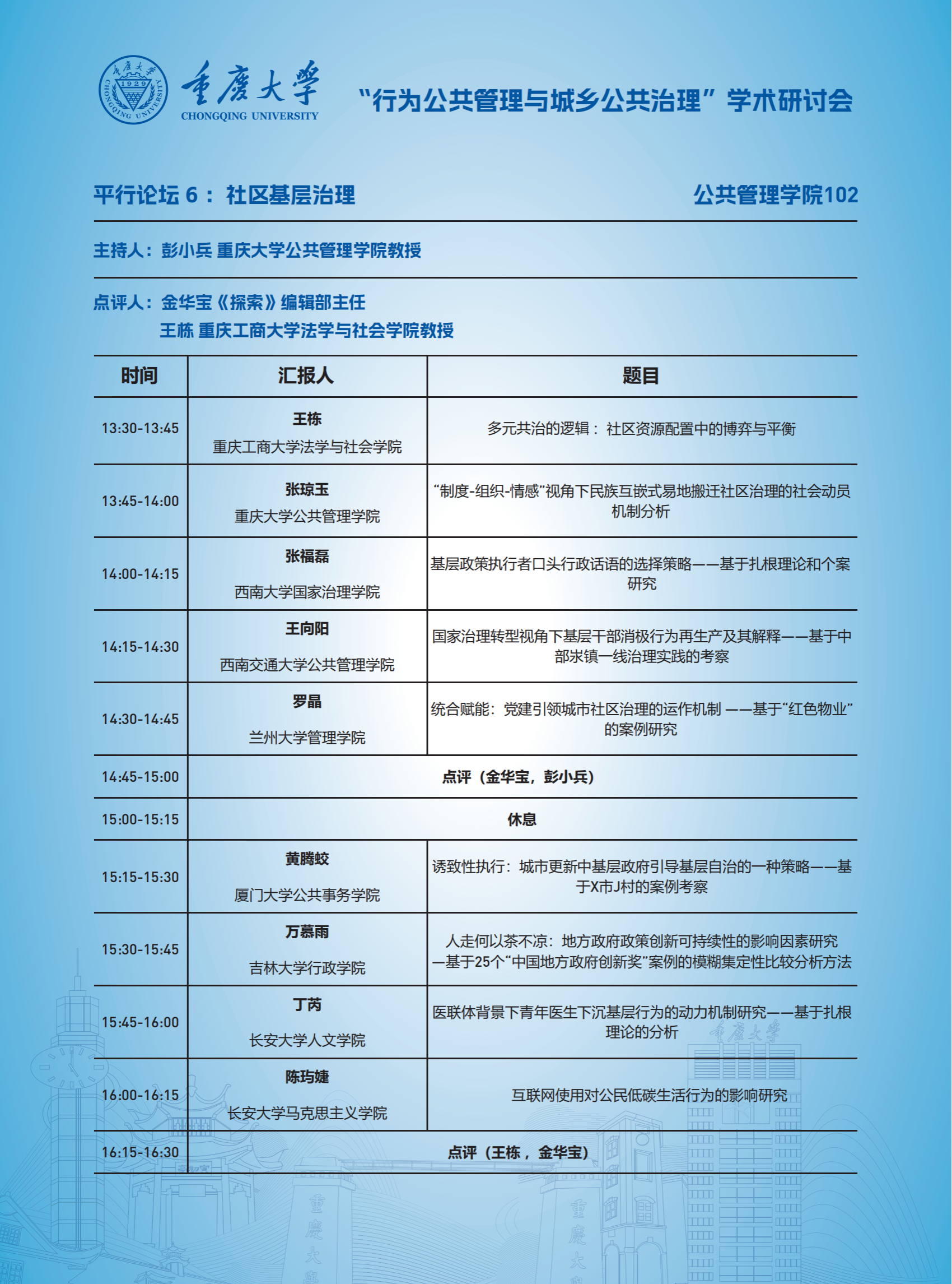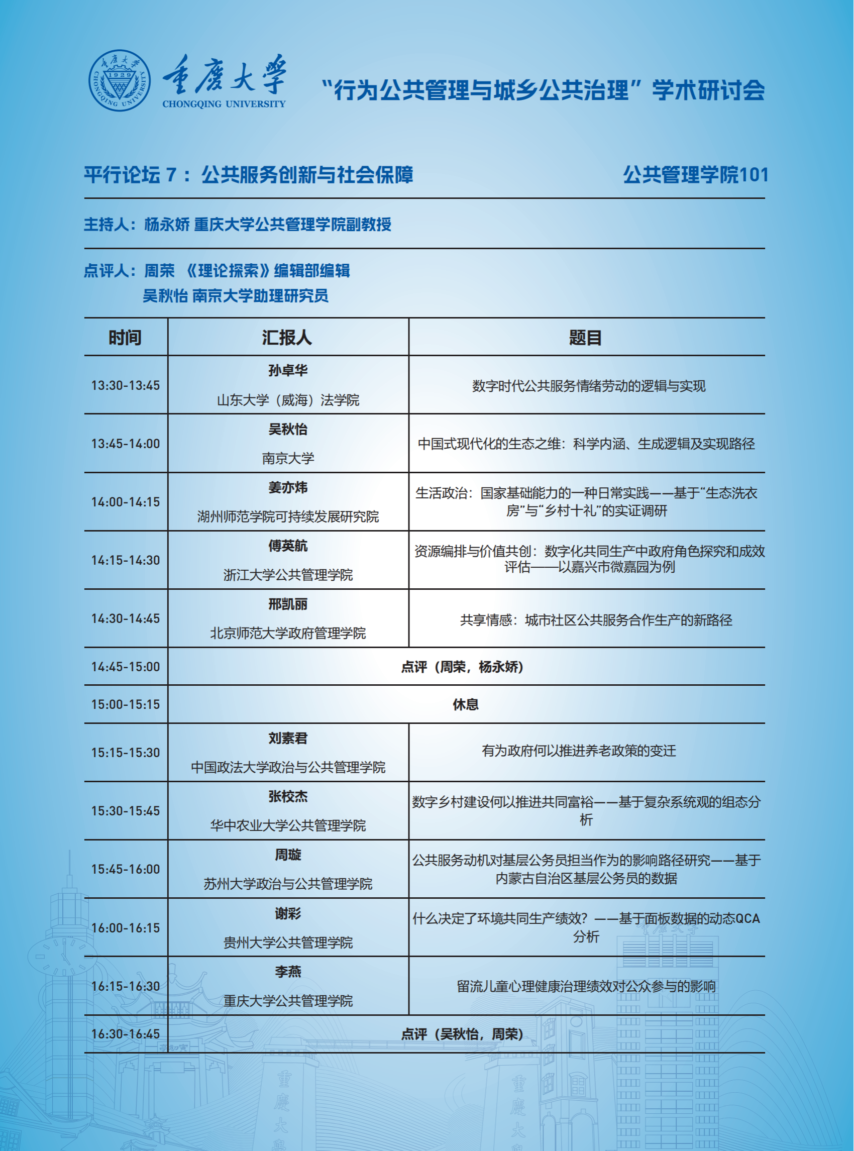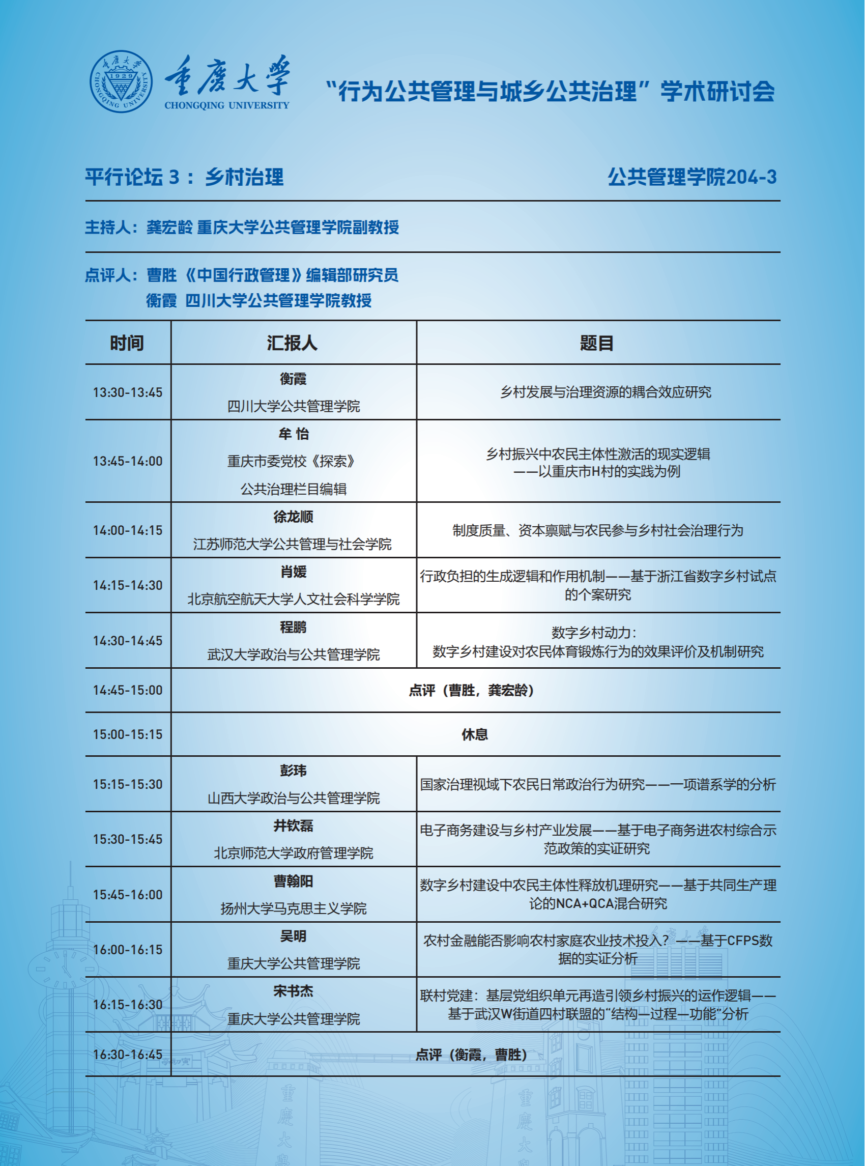 “行为公共管理与城乡公共治理”学术研讨会日程