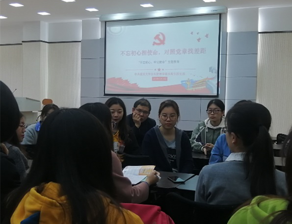 本科生二支部、本科生四支部召开“不忘初心担使命,对照党章党规找差距”专题组织生活会。本次专题组织生活由二支部书记徐柳老师主持,二支部和四支部分组进行,开展形式为每位党员对照党章党规分析自身不足,提出改进措施。四支部书记袁晓浩老师也出席了四支部的会议。