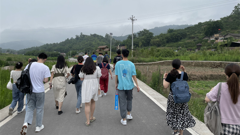 大家来到通安村此行的第一站——清华大学乡村振兴工作站,在站长唐甜甜的介绍下,了解了通安村引入高校资源参与乡村振兴的经验和探索。随后,来自西南大学文学院的王倩予副教授为大家带来了乡村振兴政策解析与案例分析的分享,她对乡村振兴的背景和政策进行了分析,并和大家生动地分享了其深度参与的酉阳乡村振兴项目案例带来的思考。