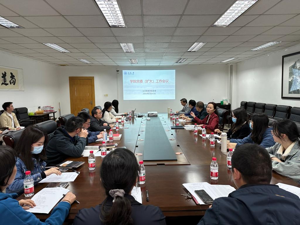 2023年3月21日下午,学院党委在一会议室召开新学期党委(扩大)会。学院党委书记张玲主持会议。