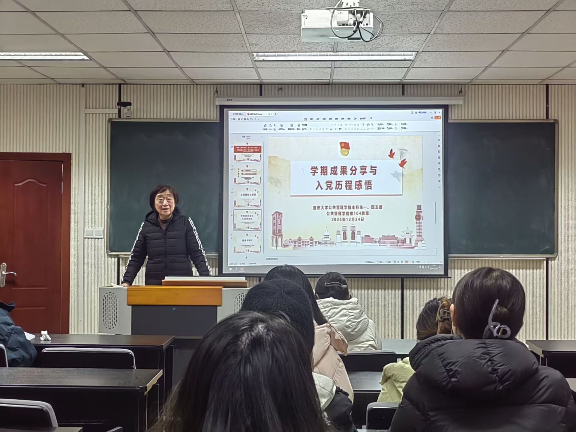 最后,王丽娟总结道,此次交流会,不仅是对大家辛勤付出的肯定与表彰,更是一个宝贵的学习与交流平台。在这里,无论是学习上的累累硕果,还是入党过程中的点点滴滴,都将成为照亮彼此前行道路的璀璨星光。她愿每一位参与者都能从中汲取力量,收获满满,以更加饱满的热情和坚定的信念,迎接新的挑战与机遇。随着大家的掌声,本次“学期成果分享与入党历程感悟交流会”圆满结束。