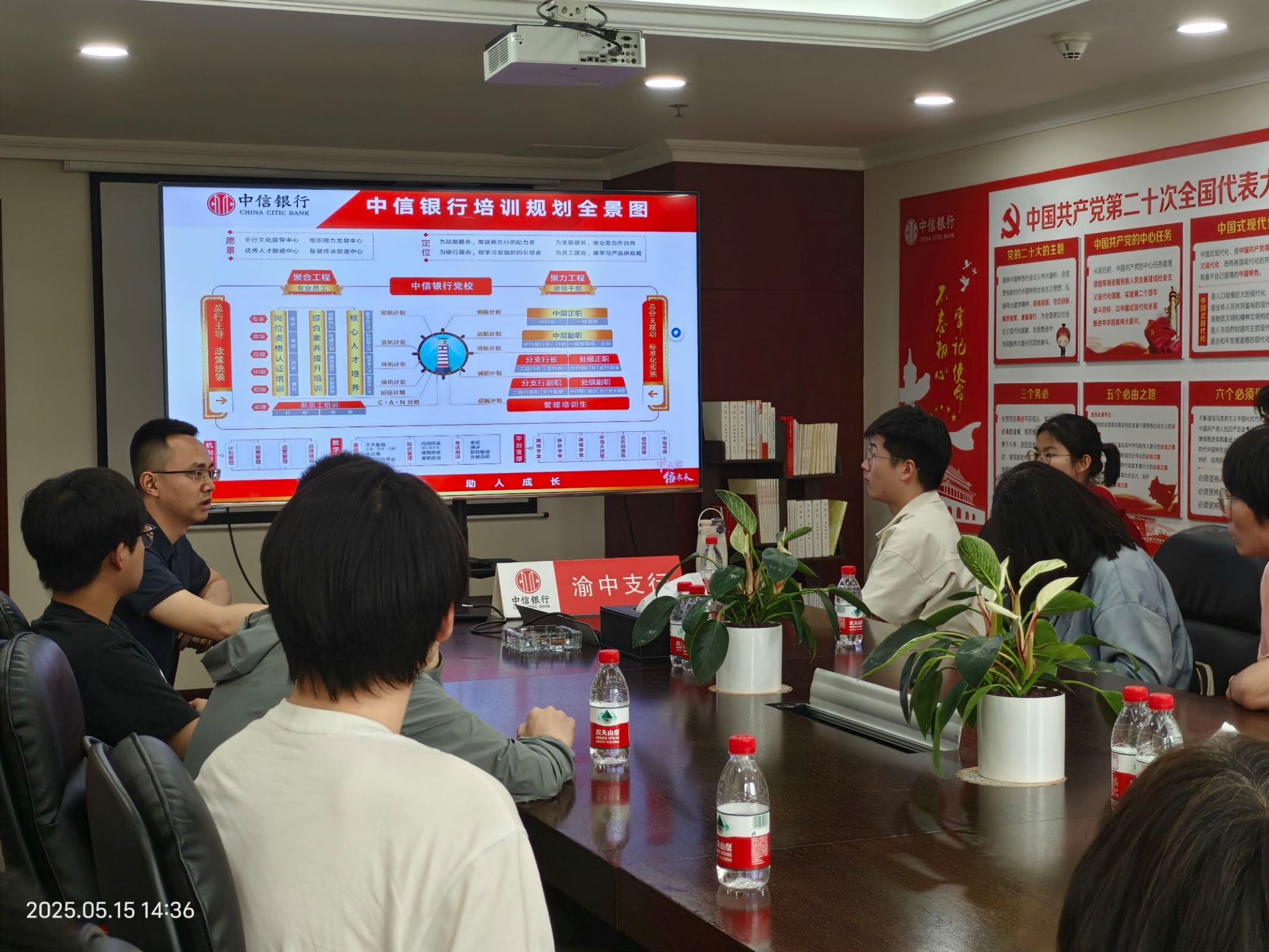 职就中心举办的第七届“名企行”——走进中信银行股份有限公司重庆渝中支行实践活动。实践团队通过沉浸式的参观体验、特色业务解析、企业招聘介绍和校企座谈交流四个环节,全方位探索金融行业前沿动态与人才需求。