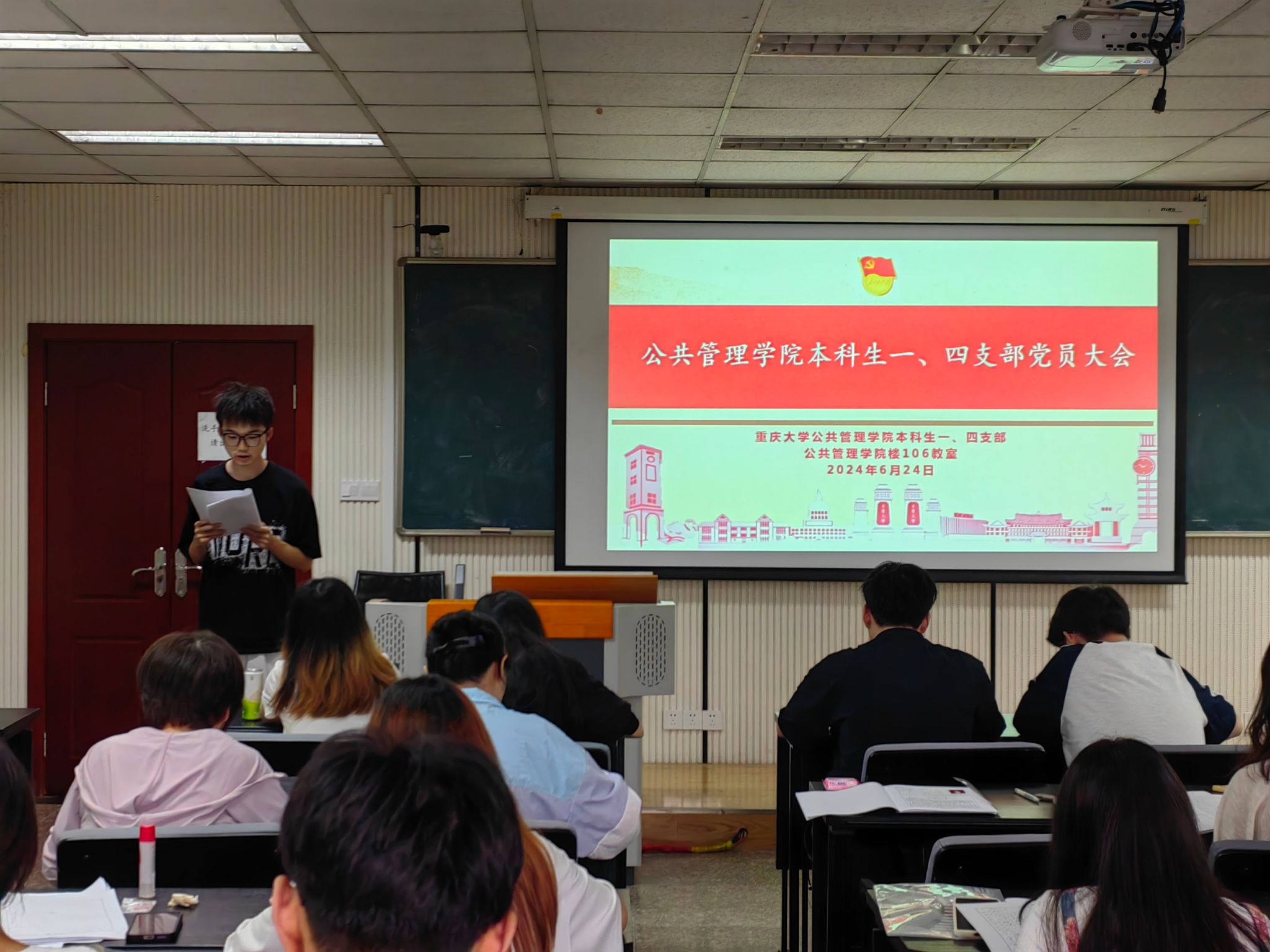 为响应党的号召,为党储备后备力量,2024年6月24日至25日,本科生四支部在学院楼106教室召开党员大会,分两批讨论决定了牛佳琪同志等13名发展对象的预备党员接收事宜。参会成员有四支部书记袁凤、组织委员申徽、宣传委员付薇以及本科生四支部全体发展对象。6月24日,本科生一支部在学院楼104教室召开党员大会,讨论决定了刘志兰同志等4名发展对象的预备党员接收事宜。参会成员有一支部书记王丽娟、组织委员赵文龙、宣传委员陈嘉怡以及本科生一支部全体发展对象。