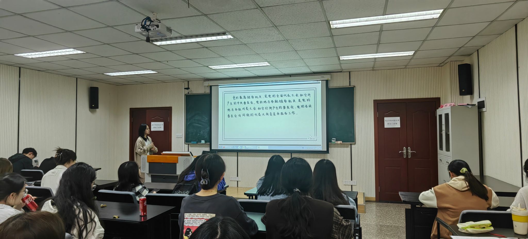 本科生四支部全体党员、2022级经济学专业、国际经济与贸易专业的入党积极分子们在学院楼106教室积极参与“支部书记讲党课之党章学习”教育活动。