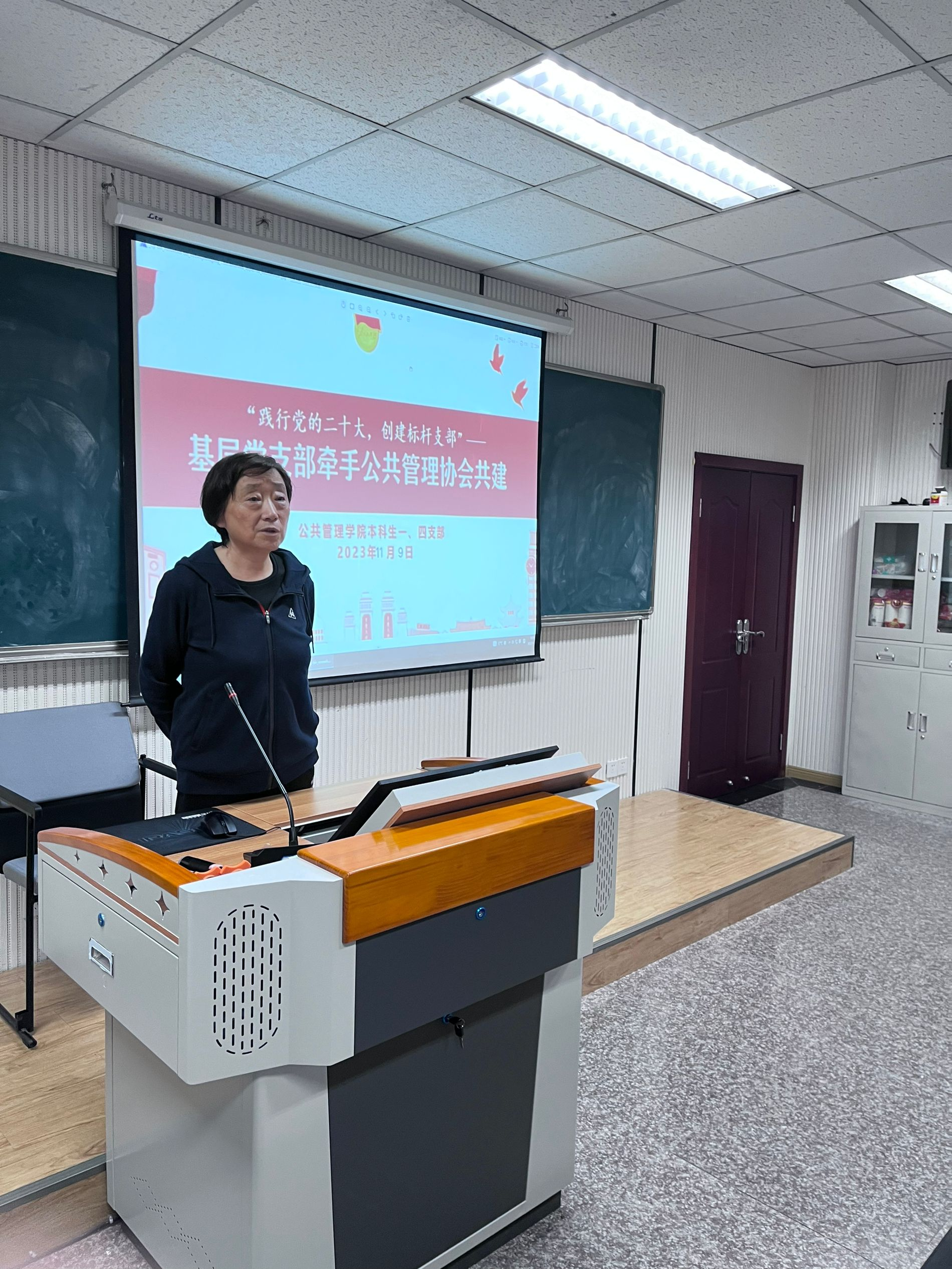 首先,由一支部书记王丽娟同志进行开场讲话,她讲述了公共管理协会近几年的发展情况,总结了我们前段时间的工作情况,表示我们还应该加强活动的举办,强调了宣传的重要性和必要性,希望协会成员可以集思广益,一起做好活动的宣传和开展工作。