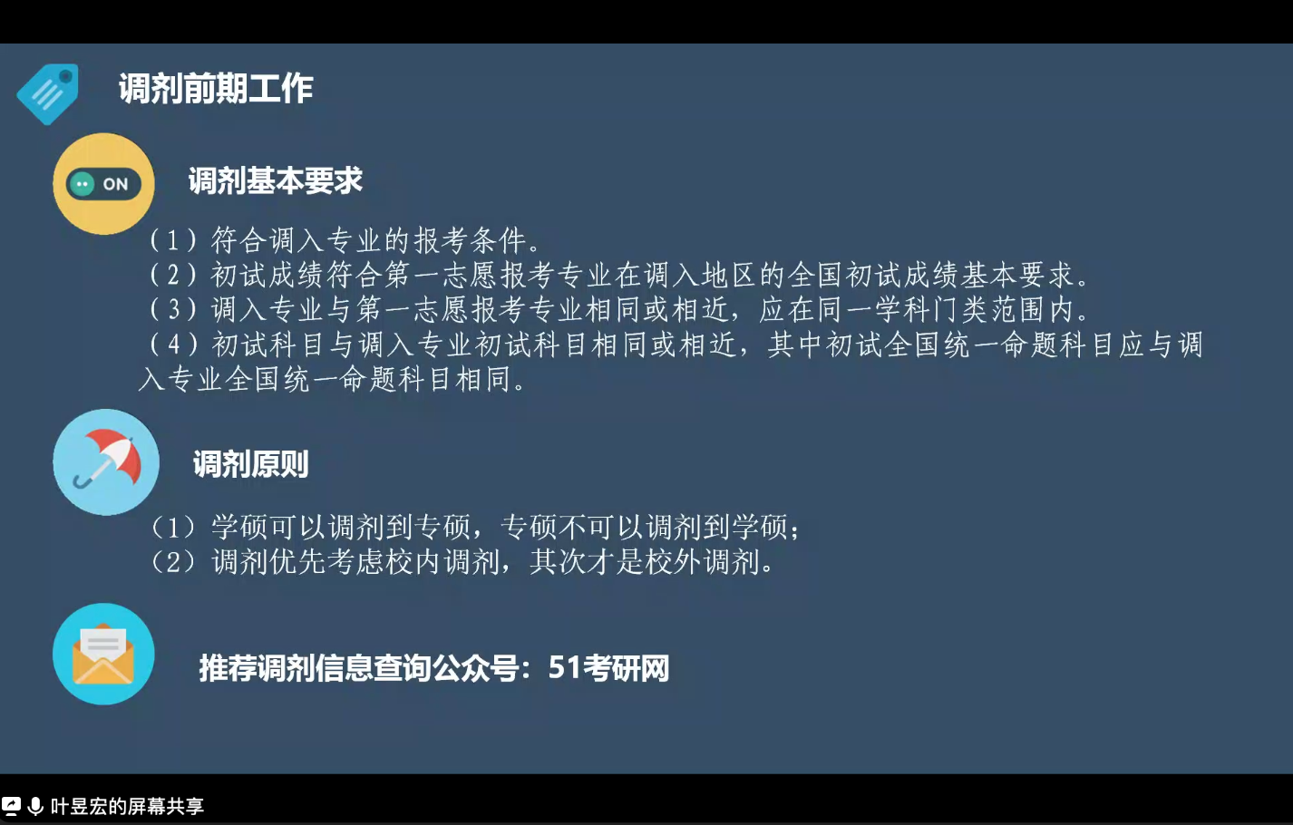 分享会上,学长学姐们主要从以下几个方面对考研调剂进行了介绍。一是调剂前期准备工作。要满足调剂的基本要求,遵循调剂原则,广泛搜集资料,确定学校和专业,并根据要求完成相应的准备工作,如联系导师、填写调剂申请表等。二是调剂系统的使用。调剂系统开放时间一般是3月中旬,最多可以申请3个平行调剂志愿,且有锁定期,一定要谨慎填写。三是复试相关问题,包括线上复数流程、线下复试流程、复试准备和心态调整。