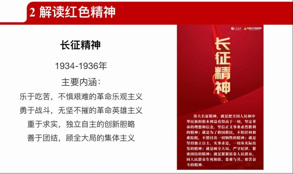 接着,主持人强欣然向大家解读了几种重要的红色精神。红船精神是开天辟地、敢为人先的首创精神,是坚定理想、百折不挠的奋斗精神,是立党为公、忠诚为民的奉献精神;北大荒精神是艰苦奋斗、勇于开拓、顾全大局、无私奉献的精神。这些精神不仅是党和人民精神宝库的重要组成部分,同样也是我们大学生的教科书,我们应当认真学习,温故知新,从中得到教益,受到启示,获得力量。