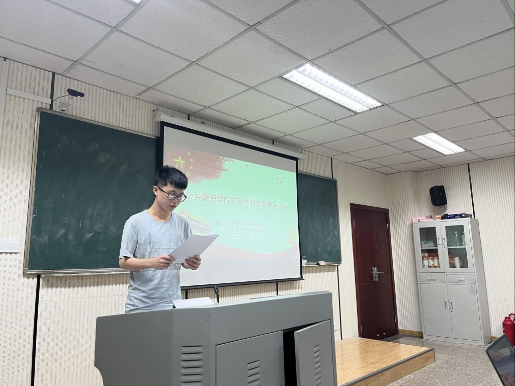 本科生四支部于学院楼106教室召开党员大会。参会成员有四支部书记李阳阳同志、副书记郭姝含同志、谢镇江同志以及本科生四支部全体预备党员。