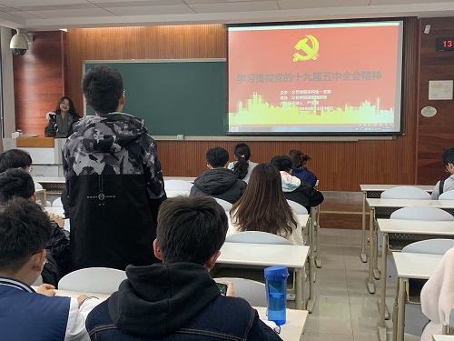 虎溪校区准时展开。本科生一支部党员全体党员、2019、2020级全体入党积极分子参与了本次活动,认真聆听学习党的十九届五中全会精神的宣讲。