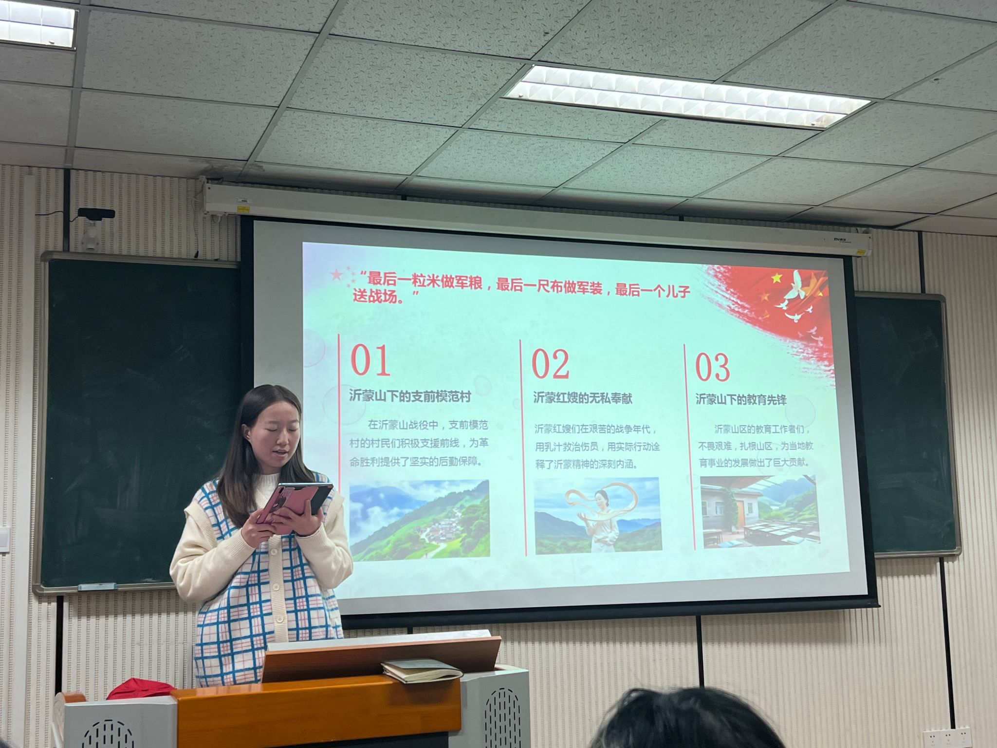研究生支教团宣讲员走进党支部,为两个支部的全体党员进行了“渝暖藏冬·情系沂蒙”沂蒙精神主题宣讲。