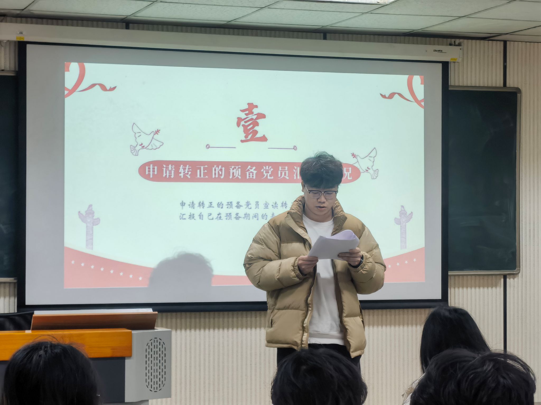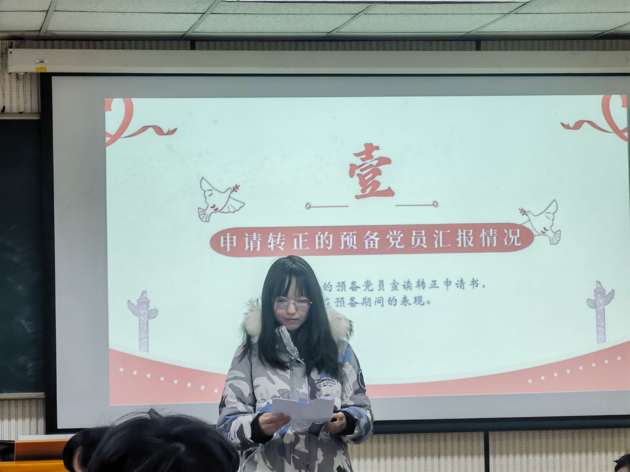 随后,会议严格按照预备党员转正的程序,对祖力米拉·迪力夏提、孙靖奇、吴悠、冉晶宇、冉健、林炜忻等同志的转正事宜依次进行审议,讨论并表决了以上六名预备党员的转正问题。申请转正的六名同志依次宣读预备党员转正申请书,向党组织汇报自己预备期间在政治思想、学习生活、实践工作等方面的表现。