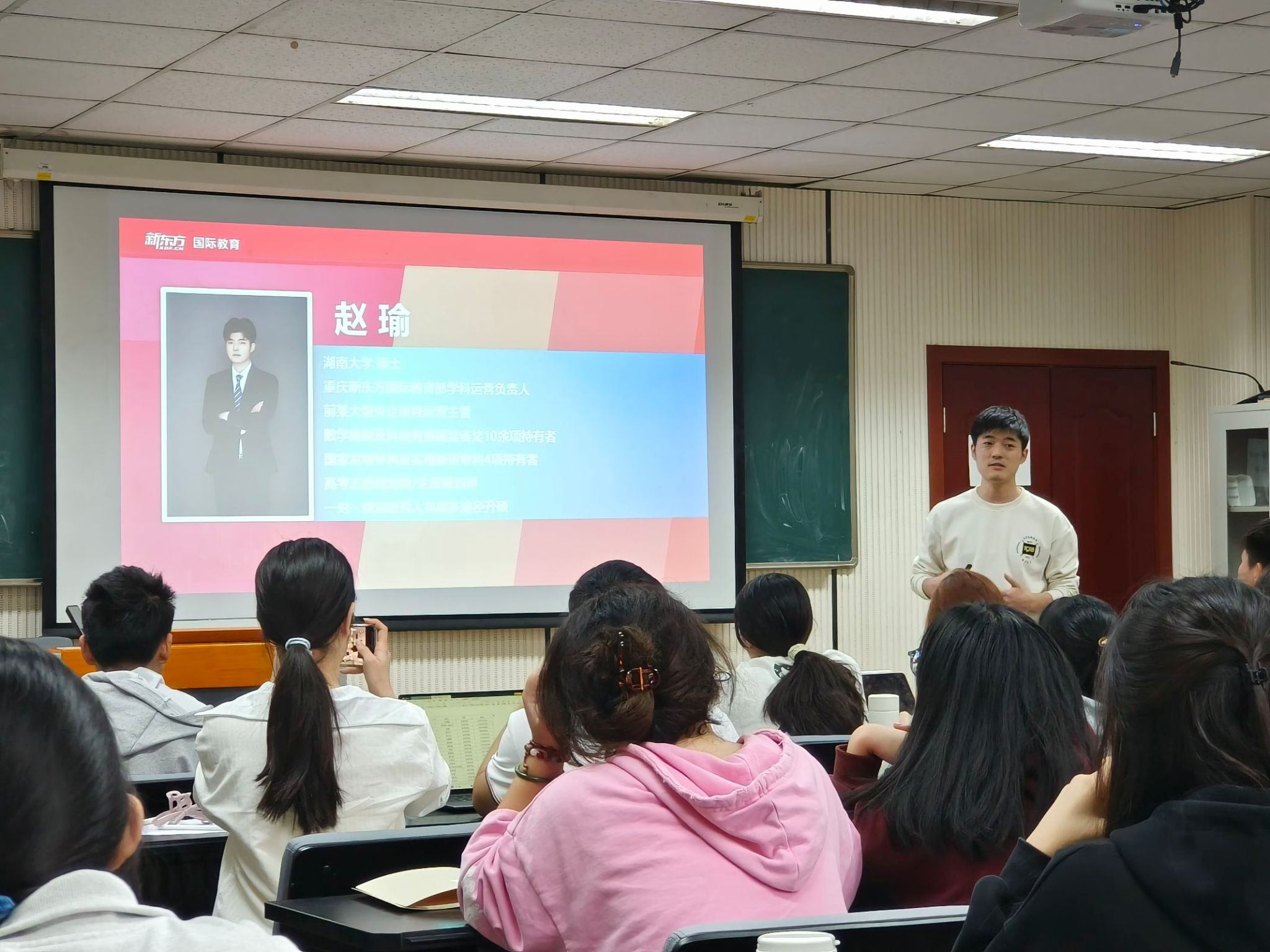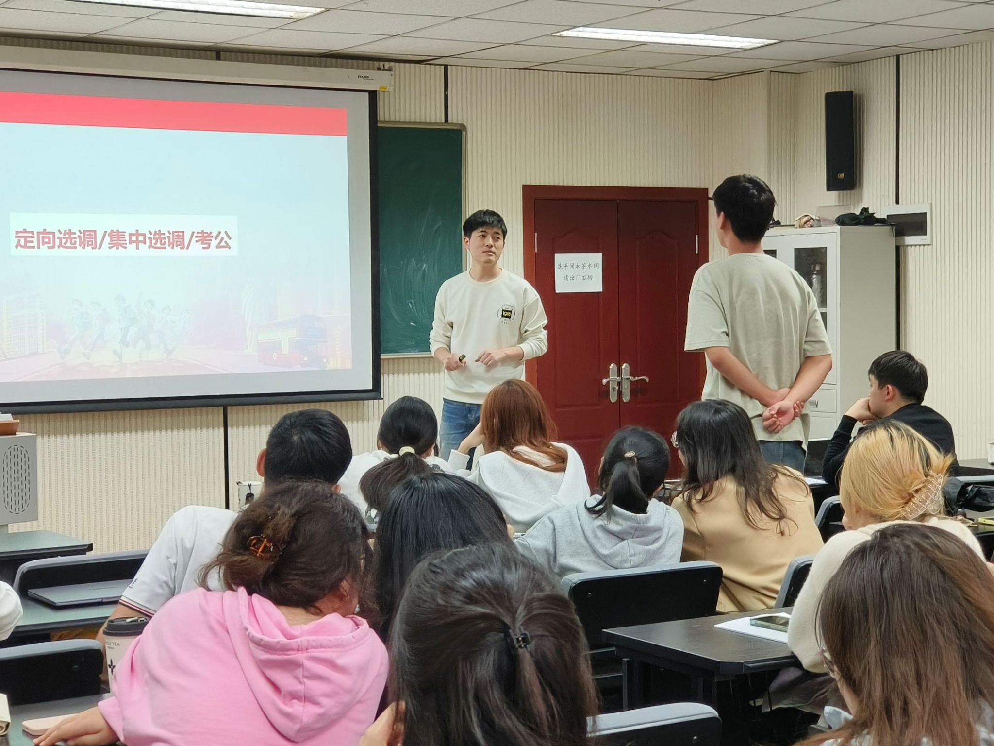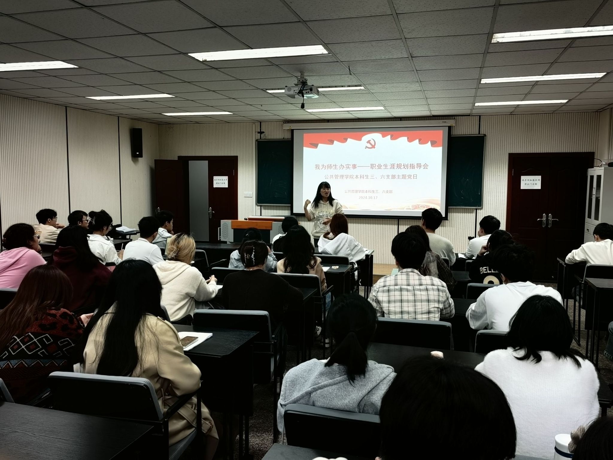 的本科2023级学生树立正确的生涯发展观念,帮助同学们选择适合自身的生涯规划路径,2024年10月17日下午15点,学院本科生三、六支部在学院楼106教室开展了“我为学生办实事 生涯指导践初心”主题党日活动。活动由2023级本科生辅导员徐柳主持,邀请到新东方教育集团的生涯指导老师作为主讲嘉宾,两个支部的学生党员和入党积极分子全部到场参加。