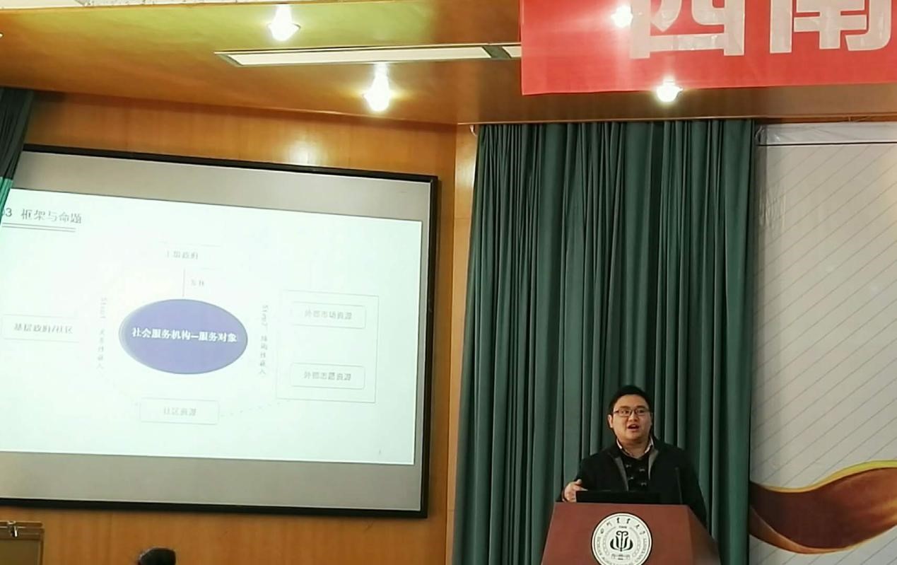 杨宝副教授作为受邀专家在主论坛上做了报告,分享了近期的一篇研究成果《嵌入结构、资源动员与社会工作服务绩效》。胡晓芳副教授受邀参观雅安上里镇庙圷村的社工站,和当地的老师、社工交流了社区社会工作的经验。城市社区治理的分论坛上,研究生谢双鞠就论文《公共性再生产:社区共同体困境消解策略》进行了汇报。