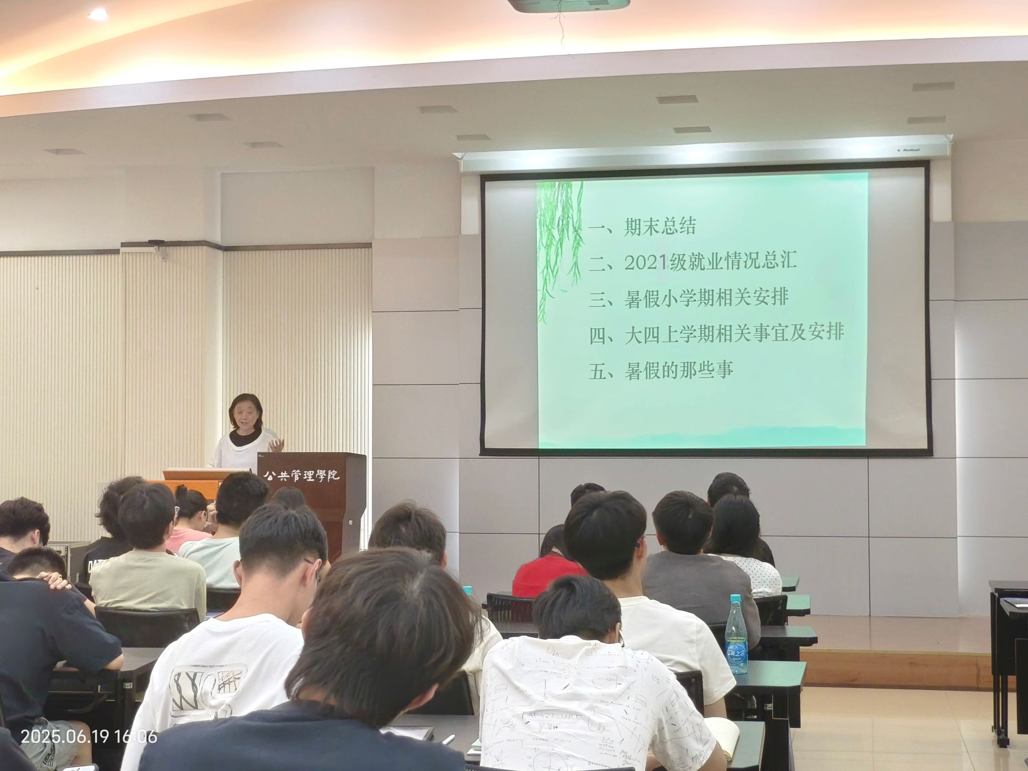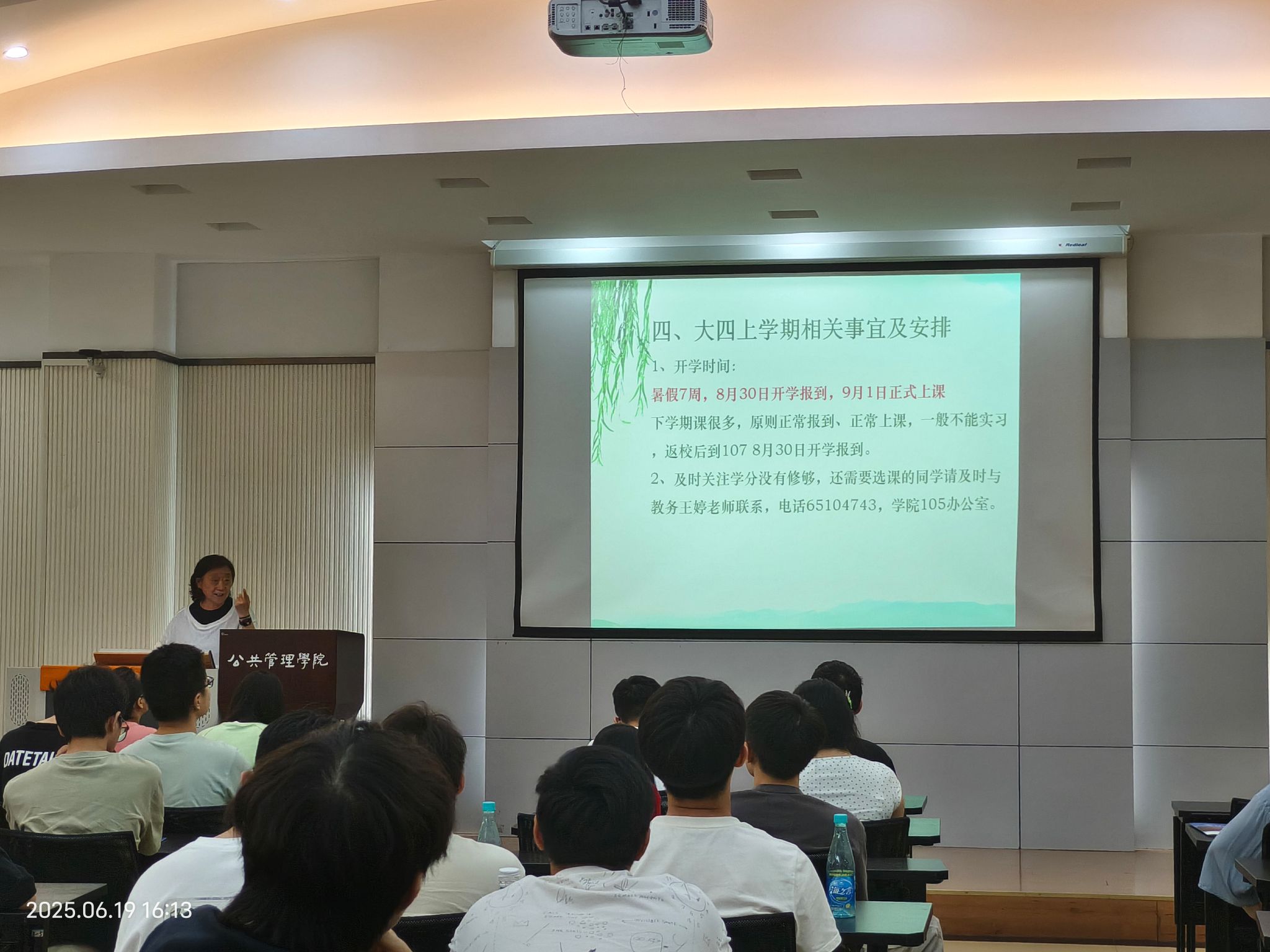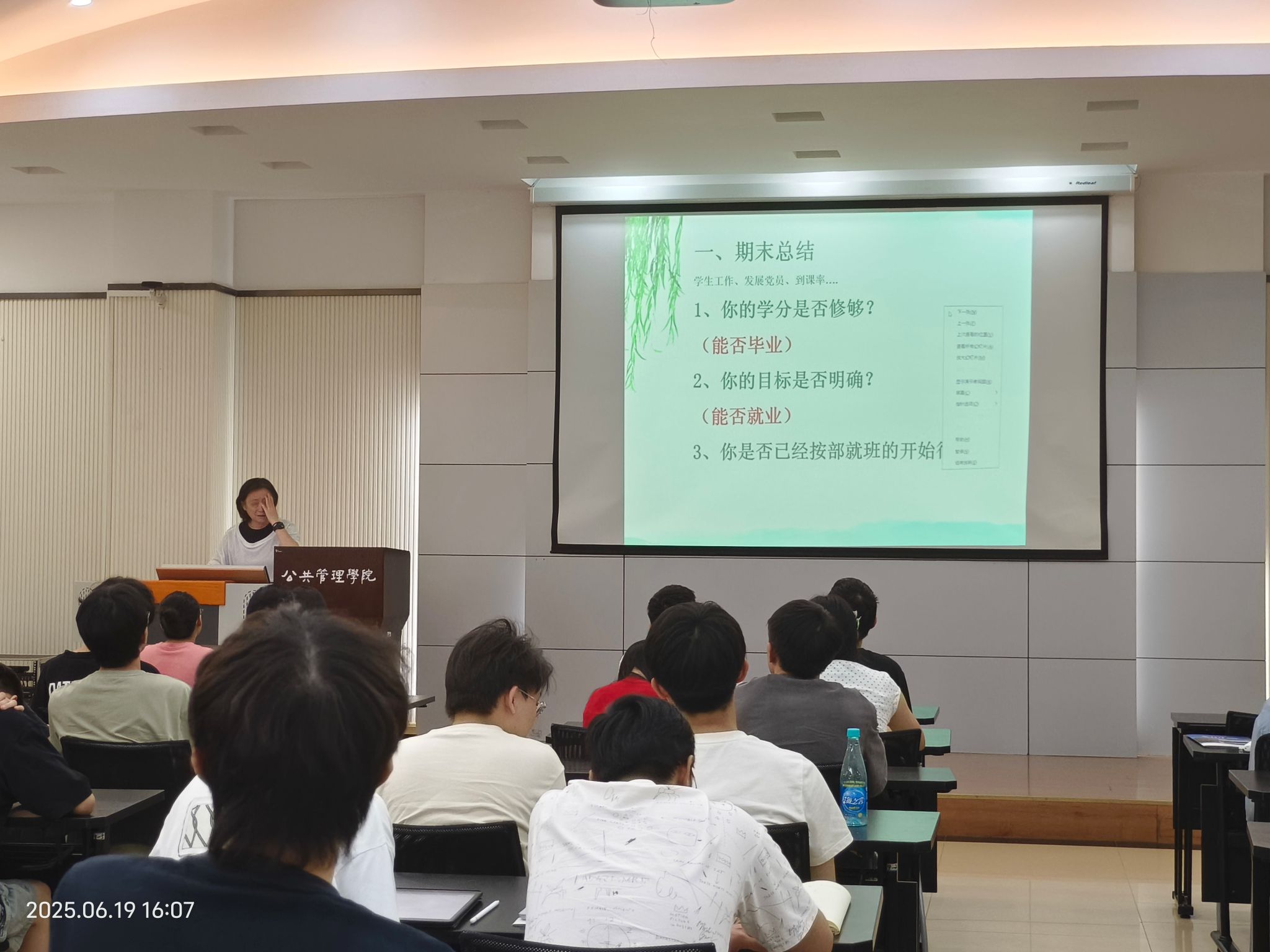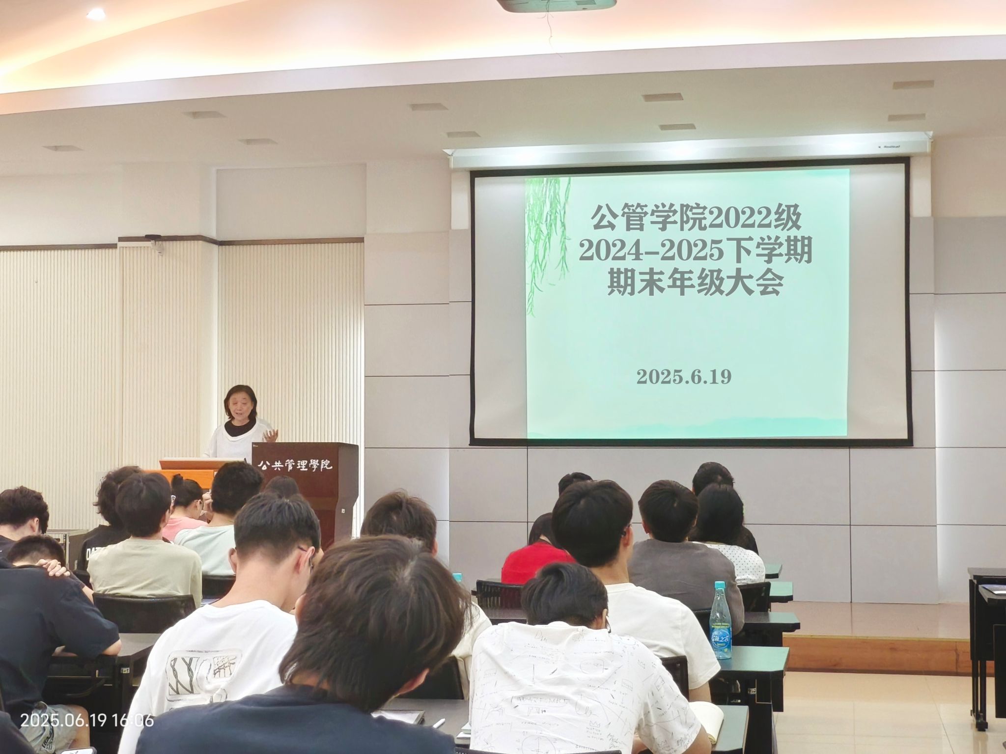 2022级2024-2025第二学期期末年级大会在学院楼102顺利召开。本次大会由学办主任、22级辅导员王丽娟主持,22级全体同学参与了本次年级大会。