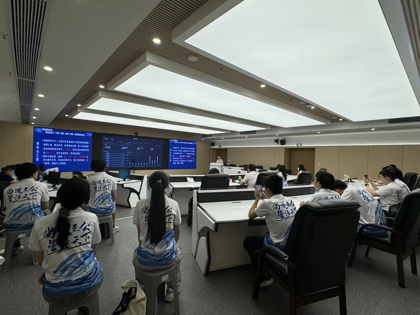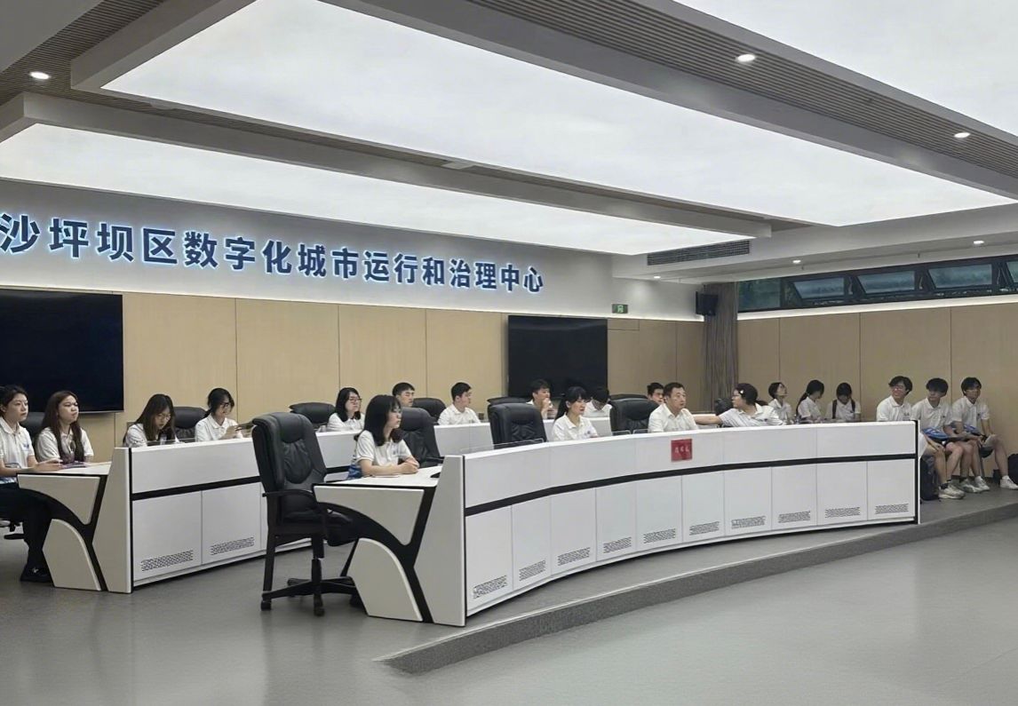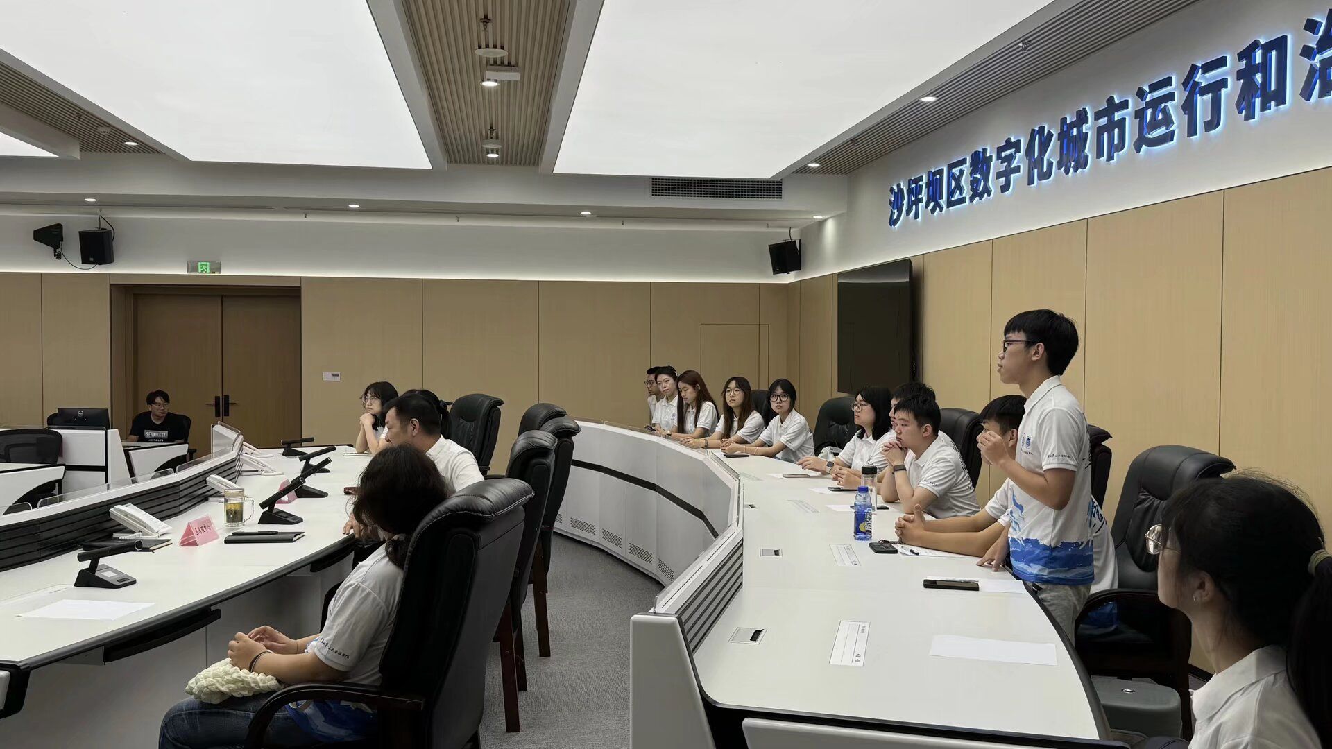 “数智渝行,云端护‘心'”暑期社会实践团师生21人,在学院团委书记徐柳、辅导员李庆的带领下,走进重庆市沙坪坝区数字化城市运行和治理中心(以下简称“区数治中心”),开展了一场沉浸式的数字治理实践研学活动。通过实地观摩、场景演示和互动交流,师生们深入了解了“数字重庆”建设在区县层面的创新实践与实战成效。