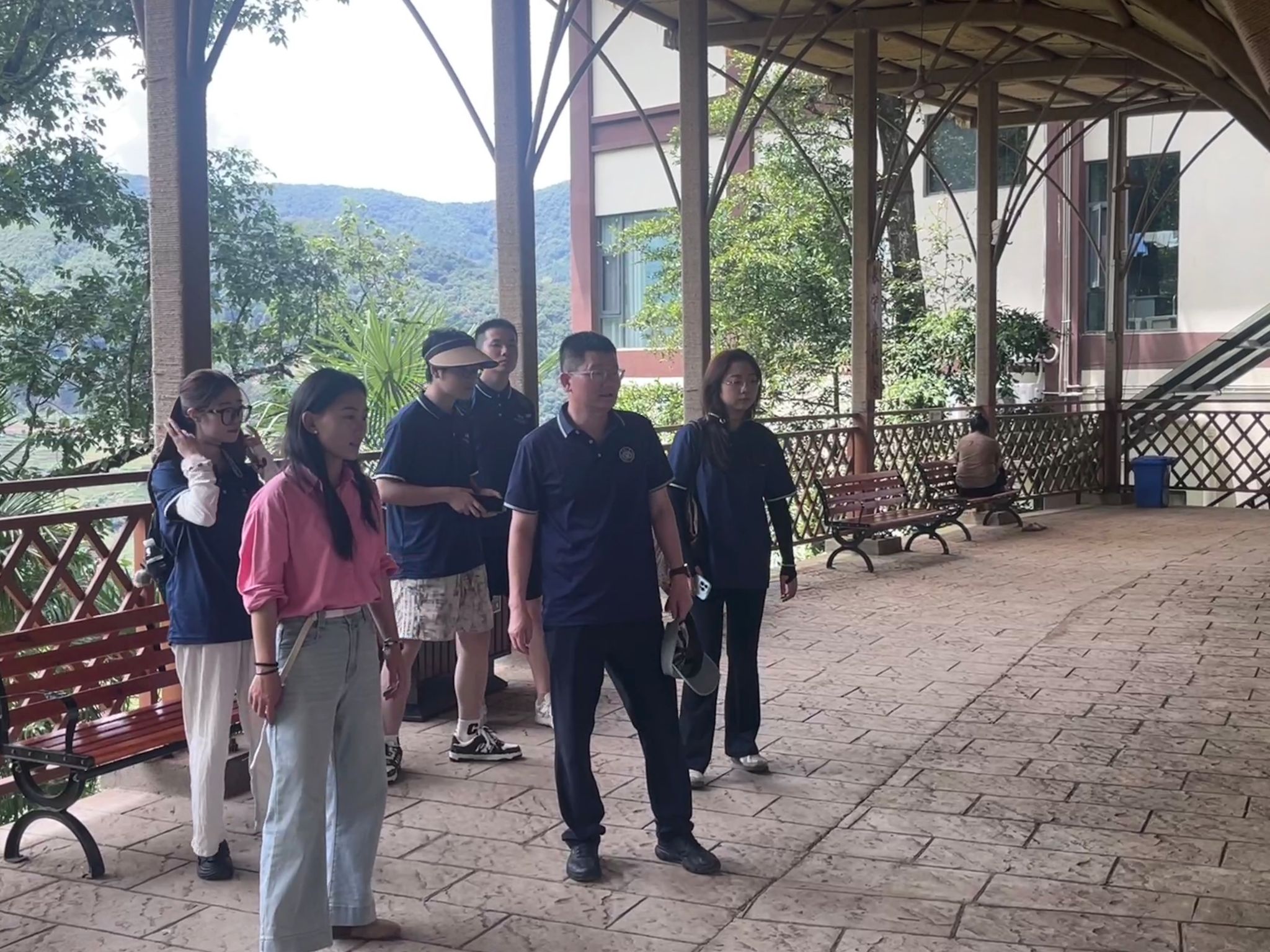 随后,一路成员踏入沪滇协作精心雕琢的示范村——虾巴村。层叠的梯田如大地诗行,独具特色的旅居民宿与星空民宿点缀其间,农文旅深度融合的魅力扑面而来。在虾芭时光生态农场有限公司,创始人王祥仿与服务团围桌恳谈。他介绍在依托长宁区的帮扶下,虾巴村探索“农文旅融合+产业发展+民族团结进步+文明新风+生态宜居”联农带乡村振兴模式的历程,坦言当下痛点和打造“国家级康养胜地”的宏愿,并热忱邀请服务团成员利用所学所思,深度参与虾巴村的项目设计与落实。